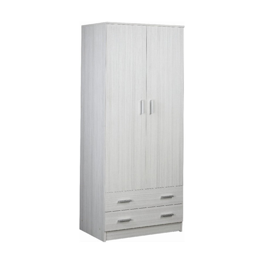 Una soluzione elegante per riporre i tuoi vestiti, questo armadio a due ante e due cassetti offre un ampio potenziale di archiviazione in un design contemporaneo. Disponibile in una gamma di finiture per adattarsi al tuo arredamento esistente. Struttura e frontali sp. 16mm. Contiene 1 barra portabiti, 1 ripiano regolabile. Guide cassetto in plastica. Maniglie verniciate cromo satinato. Mobile in kit. Misure: 182x77x52 Colore Struttura/Structure - Frontale/Front: Eucalipto / Eucalyptus - Eucalipto / Eucalyptus