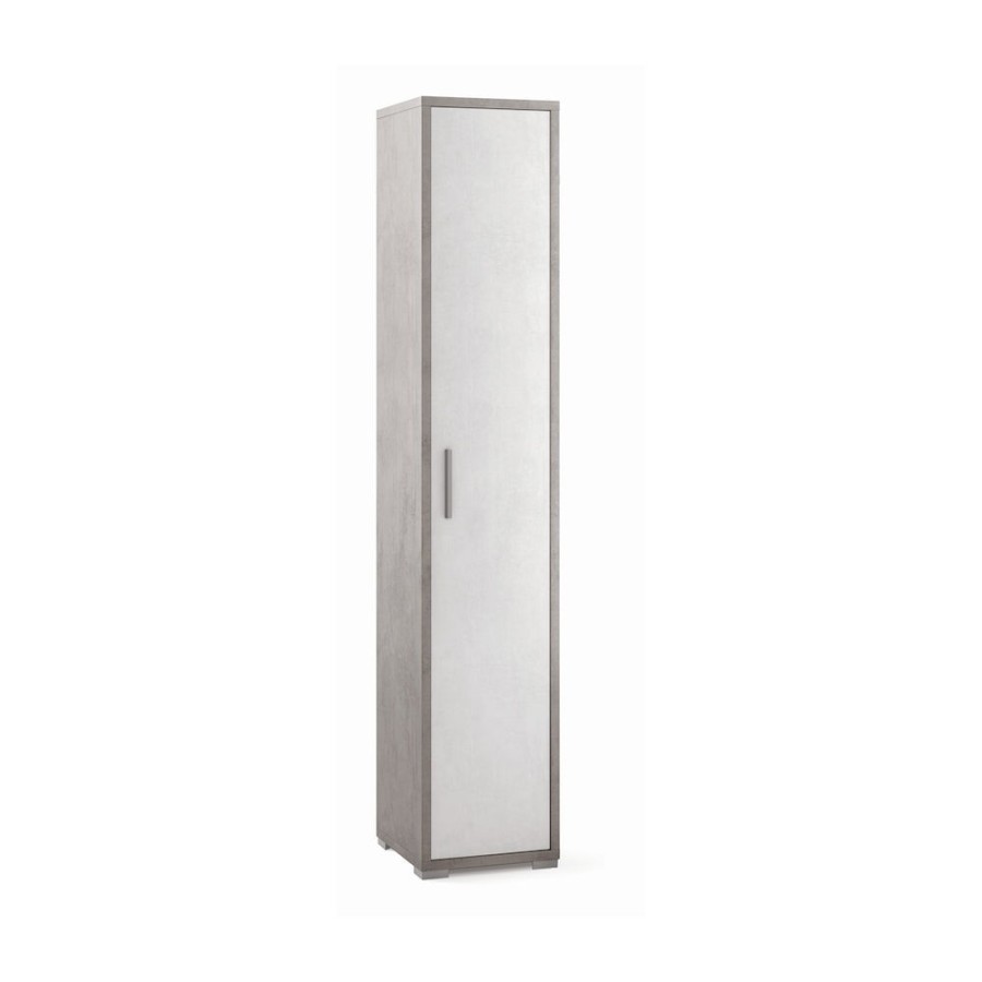 Con il suo design inconfondibile, questa libreria aggiunge un tocco di stile all'ambiente circostante. la libreria presenta cinque livelli ideali per esporre non solo libri ma arte, piante d'appartamento, dischi, elettronica e altro ancora. La sua altezza lo rende perfetto in un ufficio-studio, con le sue altezze che si adattano alle dimensioni dei raccoglitori. Struttura sp. 25mm e ripiani sp. 18mm, anta sp. 16mm, bordi in ABS. Interno: 2 ripiani regolabili e 2 fissi. Maniglia e piedini verniciati cromo satinato. Mobile in kit. Misure: 199x39x41 Colore Struttura/Structure - Frontale/Front: Cemento / Beton - Ossido Bianco / Oxide White