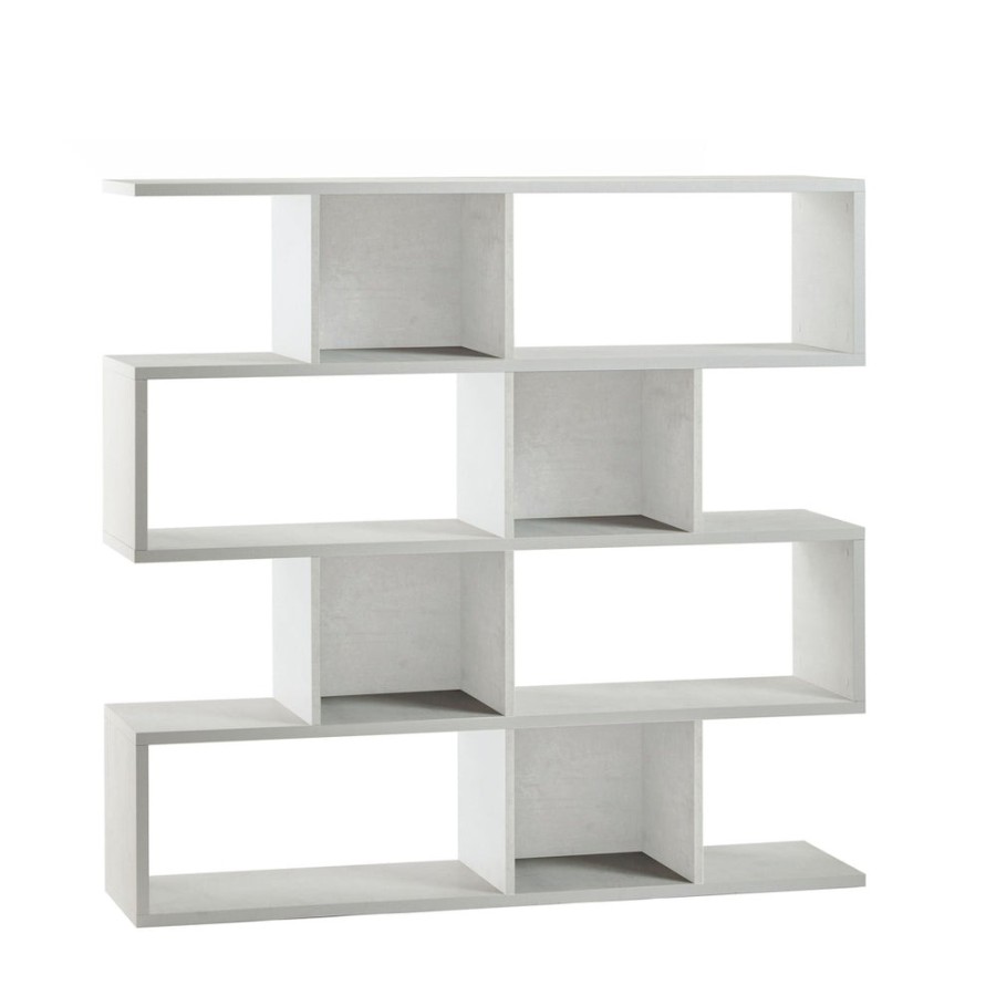 Con un design unico, questa libreria modulare a 4 piani, si adatta facilmente ai vari stili dell'ambiente circostante, moderna che integra arte e praticità. I ripiani garantiscono ampio spazio per riporre gli ogetti che ami. Dona un tocco di modernità al tuo spazio con questa libreria di design. Ogni singolo cubo-ripiano può essere montato con l'apertura su un lato o sul lato opposto, in modo da poter adattare il mobile ad un uso a parete o come divisoria di ambienti. Struttura sp 25mm e ripiani sp. 18mm, bordi ABS. Mobile in kit. Misure: 144x150x38 Colore Struttura/Structure - Frontale/Front: Ossido Bianco / Oxide White - Ossido Bianco / Oxide White