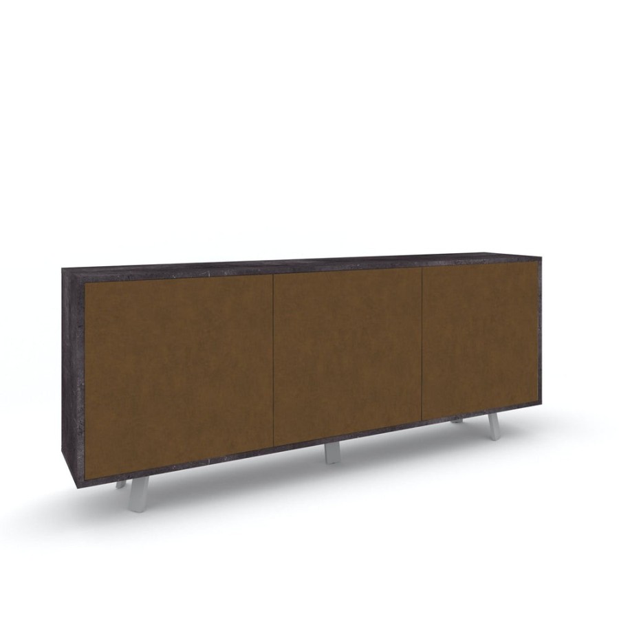 Questa madia di design è una soluzione elegante per il tuo soggiorno, l'accostamento della struttura a contrasto con il frontale, trasformerà il tuo soggiorno tradizionale in uno moderno. Dotato di tre ante con apertura push-pull. Struttura sp. 18mm e frontali sp. 16mm, fianchi e top a vista, bordi ABS. Push-pull. Contiene 2 ripiani regolabili. Piedini verniciato cromo satinato. Mobile in kit. Misure: 74x177x41 Colore Struttura/Structure - Frontale/Front: Ossido Nero / Oxide Black - Ruggine / Rust