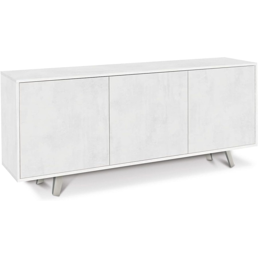 Questa madia di design è una soluzione elegante per il tuo soggiorno, l'accostamento della struttura a contrasto con il frontale, trasformerà il tuo soggiorno tradizionale in uno moderno. Dotato di tre ante con apertura push-pull. Struttura sp. 18mm e frontali sp. 16mm, fianchi e top a vista, bordi ABS. Push-pull. Contiene 2 ripiani regolabili. Piedini verniciato cromo satinato. Mobile in kit. Misure: 74x177x41 Colore Struttura/Structure - Frontale/Front: Ossido Bianco / Oxide White - Ossido Bianco / Oxide White