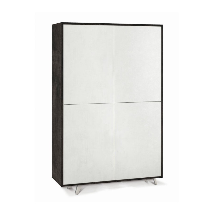 Questa madia di design è una soluzione elegante per il tuo soggiorno, l'accostamento della struttura a contrasto con il frontale, trasformerà il tuo soggiorno tradizionale in uno moderno. Dotato di quattro ante con apertura push-pull. Struttura sp. 18mm e frontali sp. 16mm, fianchi e top a vista. Contiene 4 ripiani regolabili. Push-pull. Piedini verniciati cromo satinato. Mobile in kit. Misure: 161x108x41 Colore Struttura/Structure - Frontale/Front: Ossido Nero / Oxide Black - Ossido Bianco / Oxide White