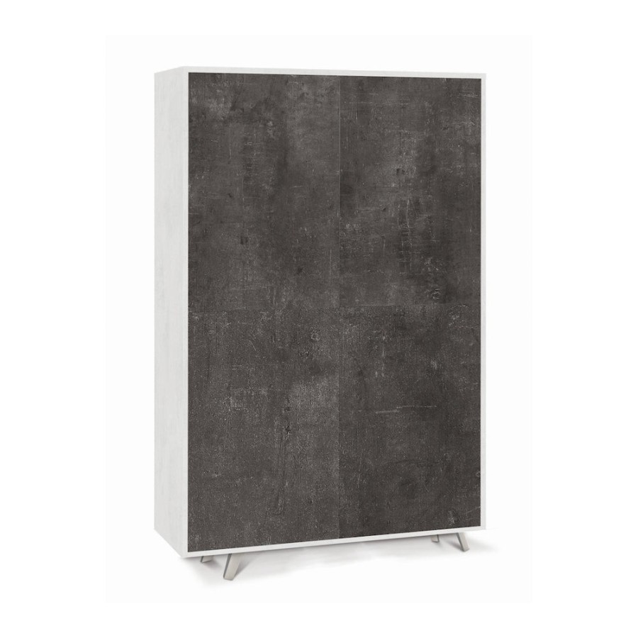 Questa madia di design è una soluzione elegante per il tuo soggiorno, l'accostamento della struttura a contrasto con il frontale, trasformerà il tuo soggiorno tradizionale in uno moderno. Dotato di quattro ante con apertura push-pull. Struttura sp. 18mm e frontali sp. 16mm, fianchi e top a vista. Contiene 4 ripiani regolabili. Push-pull. Piedini verniciati cromo satinato. Mobile in kit. Misure: 161x108x41 Colore Struttura/Structure - Frontale/Front: Ossido Bianco / Oxide White - Ossido Nero / Oxide Black