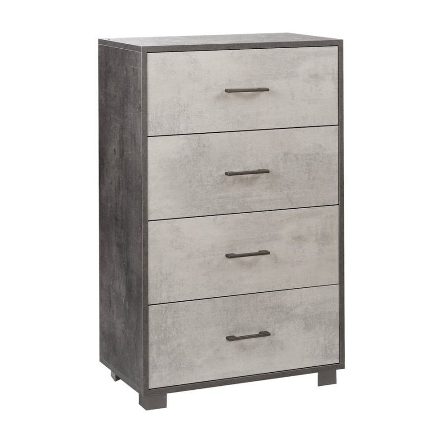 Questa cassettiera con quattro cassetti offre una soluzione di archiviazione contemporanea. I cassetti poggiano su guide metalliche per un'apertura e una chiusura fluide. Minimal e urban che si adatta perfettamente al tuo stile di casa. Struttura sp. 18mm e cassetti sp. 16mm, bordi ABS. Guide cassetto a rullo. Maniglie e piedini verniciato cromo satinato (bruniti con struttura Ossido o Titanio; struttura e frontali Cemento). Mobile in kit. Misure: 112x70x41 Colore Struttura/Structure - Frontale/Front: Ossido Nero / Oxide Black - Cemento / Beton