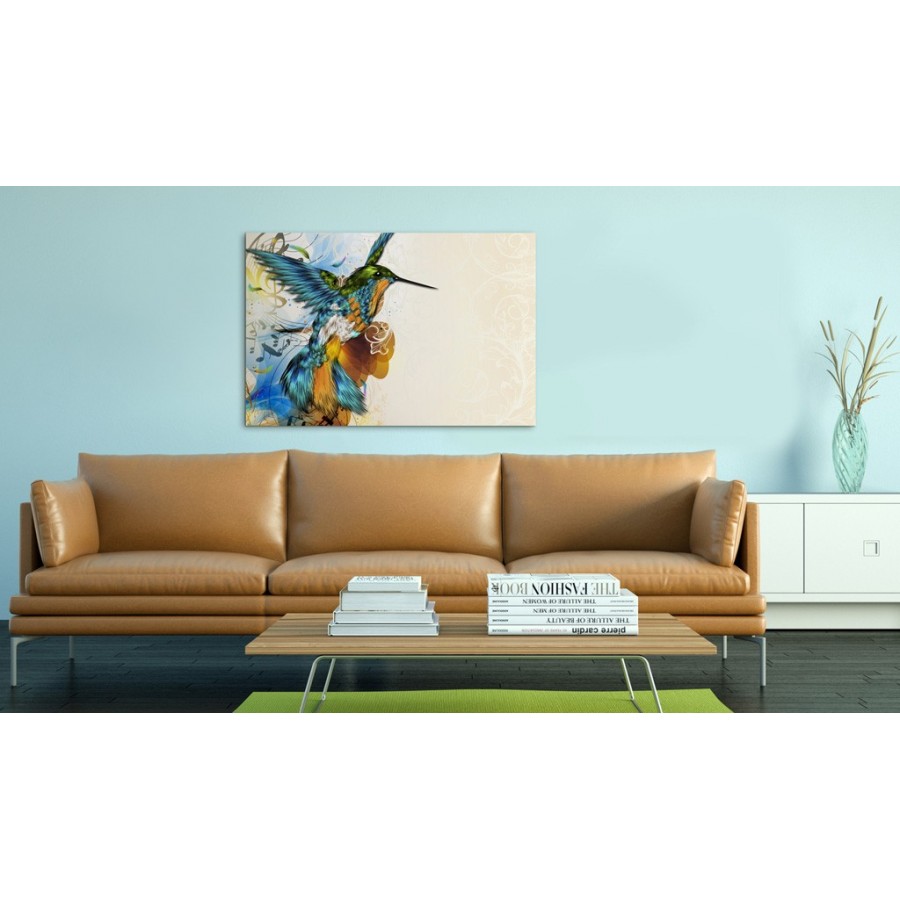 Vuoi cambiare l’aspetto del tuo appartamento? Quando entri a casa hai la sensazione che è arrivata l’ora di cambiare qualcosa? O forse hai bisogno di un regalo meraviglioso?Il quadro di alta qualità "Quadro - Bird's music" è il risultato del lavoro di un gruppo di talentuosi progettisti: giovani artisti, grafici e fotografi pieni di idee. Il quadro che ti interessa è il connubio della stampa di migliore qualità, del minuzioso lavoro manuale e dei migliori materiali.Materiali di alta qualità Il quadro "Quadro - Bird's music" viene stampato su una particolare tela tessuto non tessuto che rende i colori ideali. La tela viene stesa su un telaio leggero ma stabile, fatto di materiali ecosostenibili. La decorazione di primo livello viene garantita dalla stampa di altissima qualità grazie alla quale i colori sono vividi e i dettagli perfettamente riprodotti, a prescindere dal formato del quadro. Lati stampati I lati del quadro sono stampati da tutte le parti per cui il quadro non necessita della cornice ed è subito pronto per essere appeso. Stampa di altissima qualità! La tela di particolare tipo assieme all’adatta risoluzione della stampa garantiscono la nitidezza dell’immagine e la profondità dei colori. Prodotto inodore I nostri quadri sono inodori e al 100% sicuri, grazie a ciò sono ideali per metterli nella camera da letto oppure nella cameretta del tuo bambino. Protezione UV Il tipo di stampa applicato è resistente ai raggi UV grazie a ciò i colori non sbiadiscono, anche dopo una lunga esposizione alla luce solare. Imballaggio sicuro Prima della spedizione il quadro viene imballato con la pellicola pluriball e messo in una scatola di cartone spesso. Quadri moderni con un tocco del vero design I nostri artisti sfruttano la propria esperienza, passione e sapienza, immettendo lo spirito artistico nelle proprie opere per poterti dare il quadro che si inserisca bene nel canone del design contemporaneo.I nostri quadri sono una soluzione semplice ed economica per rinfrescare l’interno e donargli un nuovo aspetto, invece la vasta gamma di disegni soddisferà ogni gusto. Nella nostra offerta ci sono quadri di natura morta e di paesaggi, quadri moderni per la sala, quadri astratti, riproduzioni di quadri degli artisti famosi, mappe del mondo, quadri industriali e tanti altri.Il quadro è una decorazione che attira l’attenzione, a prescindere dal tipo di stanza nella quale si trova! Tra le nostre proposte ci sono quadri per la sala di grande formato, quadri rappresentativi per l’ufficio, quadri rilassanti per la camera da letto, quadri che personalizzano l’interno e gli donano un’atmosfera unica, quadri allegri per la cameretta del bambino, ecc. Con il quadro si può decorare anche gli interni meno ovvi, tipo la cucina, il bagno oppure il corridoio. A prescindere dall’interno nel quale verrà messo di sicuro gli donerà un clima unico e creerà un’atmosfera accogliente per tutta la famiglia e gli ospiti.Il quadro da parete è anche un ottimo regalo per varie occasioni, tipo:compleanno,matrimonio, in quanto simbolo di una nuova vita,inaugurazione della casa nuova,Natale,San Valentino,ecc. Lascia che il quadro "Quadro - Bird's music" trasformi la tua casa e quella dei tuoi cari!