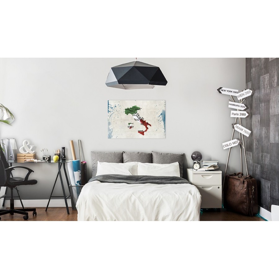 Vuoi cambiare l’aspetto del tuo appartamento? Quando entri a casa hai la sensazione che è arrivata l’ora di cambiare qualcosa? O forse hai bisogno di un regalo meraviglioso?Il quadro di alta qualità "Quadro - Map: Italy" è il risultato del lavoro di un gruppo di talentuosi progettisti: giovani artisti, grafici e fotografi pieni di idee. Il quadro che ti interessa è il connubio della stampa di migliore qualità, del minuzioso lavoro manuale e dei migliori materiali.Materiali di alta qualità Il quadro "Quadro - Map: Italy" viene stampato su una particolare tela tessuto non tessuto che rende i colori ideali. La tela viene stesa su un telaio leggero ma stabile, fatto di materiali ecosostenibili. La decorazione di primo livello viene garantita dalla stampa di altissima qualità grazie alla quale i colori sono vividi e i dettagli perfettamente riprodotti, a prescindere dal formato del quadro. Lati stampati I lati del quadro sono stampati da tutte le parti per cui il quadro non necessita della cornice ed è subito pronto per essere appeso. Stampa di altissima qualità! La tela di particolare tipo assieme all’adatta risoluzione della stampa garantiscono la nitidezza dell’immagine e la profondità dei colori. Prodotto inodore I nostri quadri sono inodori e al 100% sicuri, grazie a ciò sono ideali per metterli nella camera da letto oppure nella cameretta del tuo bambino. Protezione UV Il tipo di stampa applicato è resistente ai raggi UV grazie a ciò i colori non sbiadiscono, anche dopo una lunga esposizione alla luce solare. Imballaggio sicuro Prima della spedizione il quadro viene imballato con la pellicola pluriball e messo in una scatola di cartone spesso. Quadri moderni con un tocco del vero design I nostri artisti sfruttano la propria esperienza, passione e sapienza, immettendo lo spirito artistico nelle proprie opere per poterti dare il quadro che si inserisca bene nel canone del design contemporaneo.I nostri quadri sono una soluzione semplice ed economica per rinfrescare l’interno e donargli un nuovo aspetto, invece la vasta gamma di disegni soddisferà ogni gusto. Nella nostra offerta ci sono quadri di natura morta e di paesaggi, quadri moderni per la sala, quadri astratti, riproduzioni di quadri degli artisti famosi, mappe del mondo, quadri industriali e tanti altri.Il quadro è una decorazione che attira l’attenzione, a prescindere dal tipo di stanza nella quale si trova! Tra le nostre proposte ci sono quadri per la sala di grande formato, quadri rappresentativi per l’ufficio, quadri rilassanti per la camera da letto, quadri che personalizzano l’interno e gli donano un’atmosfera unica, quadri allegri per la cameretta del bambino, ecc. Con il quadro si può decorare anche gli interni meno ovvi, tipo la cucina, il bagno oppure il corridoio. A prescindere dall’interno nel quale verrà messo di sicuro gli donerà un clima unico e creerà un’atmosfera accogliente per tutta la famiglia e gli ospiti.Il quadro da parete è anche un ottimo regalo per varie occasioni, tipo:compleanno,matrimonio, in quanto simbolo di una nuova vita,inaugurazione della casa nuova,Natale,San Valentino,ecc. Lascia che il quadro "Quadro - Map: Italy" trasformi la tua casa e quella dei tuoi cari!