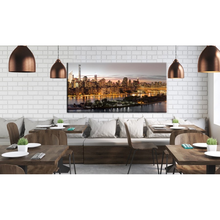 Vuoi cambiare l’aspetto del tuo appartamento? Quando entri a casa hai la sensazione che è arrivata l’ora di cambiare qualcosa? O forse hai bisogno di un regalo meraviglioso?Il quadro di alta qualità "Quadro - Evening Manhattan" è il risultato del lavoro di un gruppo di talentuosi progettisti: giovani artisti, grafici e fotografi pieni di idee. Il quadro che ti interessa è il connubio della stampa di migliore qualità, del minuzioso lavoro manuale e dei migliori materiali.Materiali di alta qualità Il quadro "Quadro - Evening Manhattan" viene stampato su una particolare tela tessuto non tessuto che rende i colori ideali. La tela viene stesa su un telaio leggero ma stabile, fatto di materiali ecosostenibili. La decorazione di primo livello viene garantita dalla stampa di altissima qualità grazie alla quale i colori sono vividi e i dettagli perfettamente riprodotti, a prescindere dal formato del quadro. Lati stampati I lati del quadro sono stampati da tutte le parti per cui il quadro non necessita della cornice ed è subito pronto per essere appeso. Stampa di altissima qualità! La tela di particolare tipo assieme all’adatta risoluzione della stampa garantiscono la nitidezza dell’immagine e la profondità dei colori. Prodotto inodore I nostri quadri sono inodori e al 100% sicuri, grazie a ciò sono ideali per metterli nella camera da letto oppure nella cameretta del tuo bambino. Protezione UV Il tipo di stampa applicato è resistente ai raggi UV grazie a ciò i colori non sbiadiscono, anche dopo una lunga esposizione alla luce solare. Imballaggio sicuro Prima della spedizione il quadro viene imballato con la pellicola pluriball e messo in una scatola di cartone spesso. Quadri moderni con un tocco del vero design I nostri artisti sfruttano la propria esperienza, passione e sapienza, immettendo lo spirito artistico nelle proprie opere per poterti dare il quadro che si inserisca bene nel canone del design contemporaneo.I nostri quadri sono una soluzione semplice ed economica per rinfrescare l’interno e donargli un nuovo aspetto, invece la vasta gamma di disegni soddisferà ogni gusto. Nella nostra offerta ci sono quadri di natura morta e di paesaggi, quadri moderni per la sala, quadri astratti, riproduzioni di quadri degli artisti famosi, mappe del mondo, quadri industriali e tanti altri.Il quadro è una decorazione che attira l’attenzione, a prescindere dal tipo di stanza nella quale si trova! Tra le nostre proposte ci sono quadri per la sala di grande formato, quadri rappresentativi per l’ufficio, quadri rilassanti per la camera da letto, quadri che personalizzano l’interno e gli donano un’atmosfera unica, quadri allegri per la cameretta del bambino, ecc. Con il quadro si può decorare anche gli interni meno ovvi, tipo la cucina, il bagno oppure il corridoio. A prescindere dall’interno nel quale verrà messo di sicuro gli donerà un clima unico e creerà un’atmosfera accogliente per tutta la famiglia e gli ospiti.Il quadro da parete è anche un ottimo regalo per varie occasioni, tipo:compleanno,matrimonio, in quanto simbolo di una nuova vita,inaugurazione della casa nuova,Natale,San Valentino,ecc. Lascia che il quadro "Quadro - Evening Manhattan" trasformi la tua casa e quella dei tuoi cari!