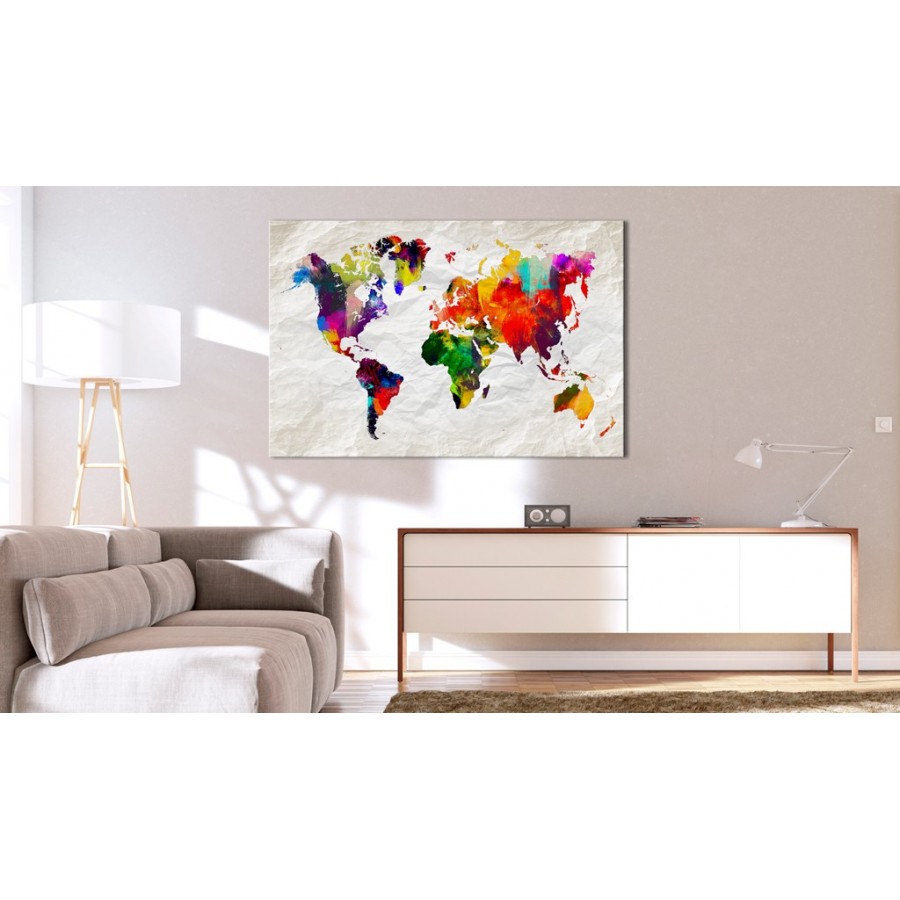 Vuoi cambiare l’aspetto del tuo appartamento? Quando entri a casa hai la sensazione che è arrivata l’ora di cambiare qualcosa? O forse hai bisogno di un regalo meraviglioso?Il quadro di alta qualità "Quadro - World Map: Rainbow Madness" è il risultato del lavoro di un gruppo di talentuosi progettisti: giovani artisti, grafici e fotografi pieni di idee. Il quadro che ti interessa è il connubio della stampa di migliore qualità, del minuzioso lavoro manuale e dei migliori materiali.Materiali di alta qualità Il quadro "Quadro - World Map: Rainbow Madness" viene stampato su una particolare tela tessuto non tessuto che rende i colori ideali. La tela viene stesa su un telaio leggero ma stabile, fatto di materiali ecosostenibili. La decorazione di primo livello viene garantita dalla stampa di altissima qualità grazie alla quale i colori sono vividi e i dettagli perfettamente riprodotti, a prescindere dal formato del quadro. Lati stampati I lati del quadro sono stampati da tutte le parti per cui il quadro non necessita della cornice ed è subito pronto per essere appeso. Stampa di altissima qualità! La tela di particolare tipo assieme all’adatta risoluzione della stampa garantiscono la nitidezza dell’immagine e la profondità dei colori. Prodotto inodore I nostri quadri sono inodori e al 100% sicuri, grazie a ciò sono ideali per metterli nella camera da letto oppure nella cameretta del tuo bambino. Protezione UV Il tipo di stampa applicato è resistente ai raggi UV grazie a ciò i colori non sbiadiscono, anche dopo una lunga esposizione alla luce solare. Imballaggio sicuro Prima della spedizione il quadro viene imballato con la pellicola pluriball e messo in una scatola di cartone spesso. Quadri moderni con un tocco del vero design I nostri artisti sfruttano la propria esperienza, passione e sapienza, immettendo lo spirito artistico nelle proprie opere per poterti dare il quadro che si inserisca bene nel canone del design contemporaneo.I nostri quadri sono una soluzione semplice ed economica per rinfrescare l’interno e donargli un nuovo aspetto, invece la vasta gamma di disegni soddisferà ogni gusto. Nella nostra offerta ci sono quadri di natura morta e di paesaggi, quadri moderni per la sala, quadri astratti, riproduzioni di quadri degli artisti famosi, mappe del mondo, quadri industriali e tanti altri.Il quadro è una decorazione che attira l’attenzione, a prescindere dal tipo di stanza nella quale si trova! Tra le nostre proposte ci sono quadri per la sala di grande formato, quadri rappresentativi per l’ufficio, quadri rilassanti per la camera da letto, quadri che personalizzano l’interno e gli donano un’atmosfera unica, quadri allegri per la cameretta del bambino, ecc. Con il quadro si può decorare anche gli interni meno ovvi, tipo la cucina, il bagno oppure il corridoio. A prescindere dall’interno nel quale verrà messo di sicuro gli donerà un clima unico e creerà un’atmosfera accogliente per tutta la famiglia e gli ospiti.Il quadro da parete è anche un ottimo regalo per varie occasioni, tipo:compleanno,matrimonio, in quanto simbolo di una nuova vita,inaugurazione della casa nuova,Natale,San Valentino,ecc. Lascia che il quadro "Quadro - World Map: Rainbow Madness" trasformi la tua casa e quella dei tuoi cari!