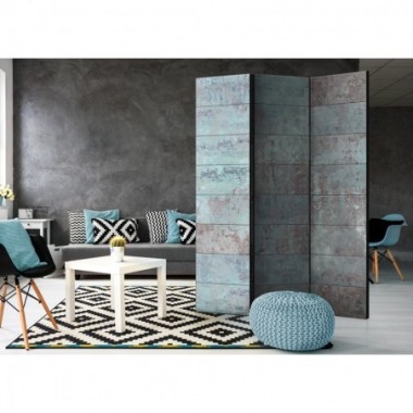 Separè decorativo "Paravento - Turquoise Concrete [Room Dividers]" è la decorazione originale per gli interni arredati in stile moderno. Paravento di 3 pannelli fatto del telaio di legno e tela stampata su entrambi i lati non solo può dividere lo spazio ma anche creare un'arrangiamento unico nella stanza. Grazie all'alta qualità del prodotto e della stampa Full HD del disegno originale i separè da interni renderanno ogni stanza affascinante. Paraventi decorativi per interni sono un'idea perfetta per arredare la casa. Vale la pena menzionare le loro funzioni pratiche - separè per interni possono p.es. nascondere lo stendibiancheria. È una decorazione molto originale che si può usare sia negli appartamenti che in locali di servizi come saloni di parrucchiere o di bellezza, studi medici o ristoranti. Separè decorativo è ideale:Come un elemento decorativo o un elemento che divide gli spazi in casaIn un monolocale dividendo la zona giorno dalla zona notteIn camera da letto dove divide la zona notte dalla guardarobaNei boutique e saloni di bellezza - sia come un arrangiamento originale che lo spogliatoio!Per dividere lo spazio nella stanza dei bambiniIn grandi appartamenti e nei loft Dati tecnici Dimensioni delle parti:135x172: 45x172 45x172 45x172