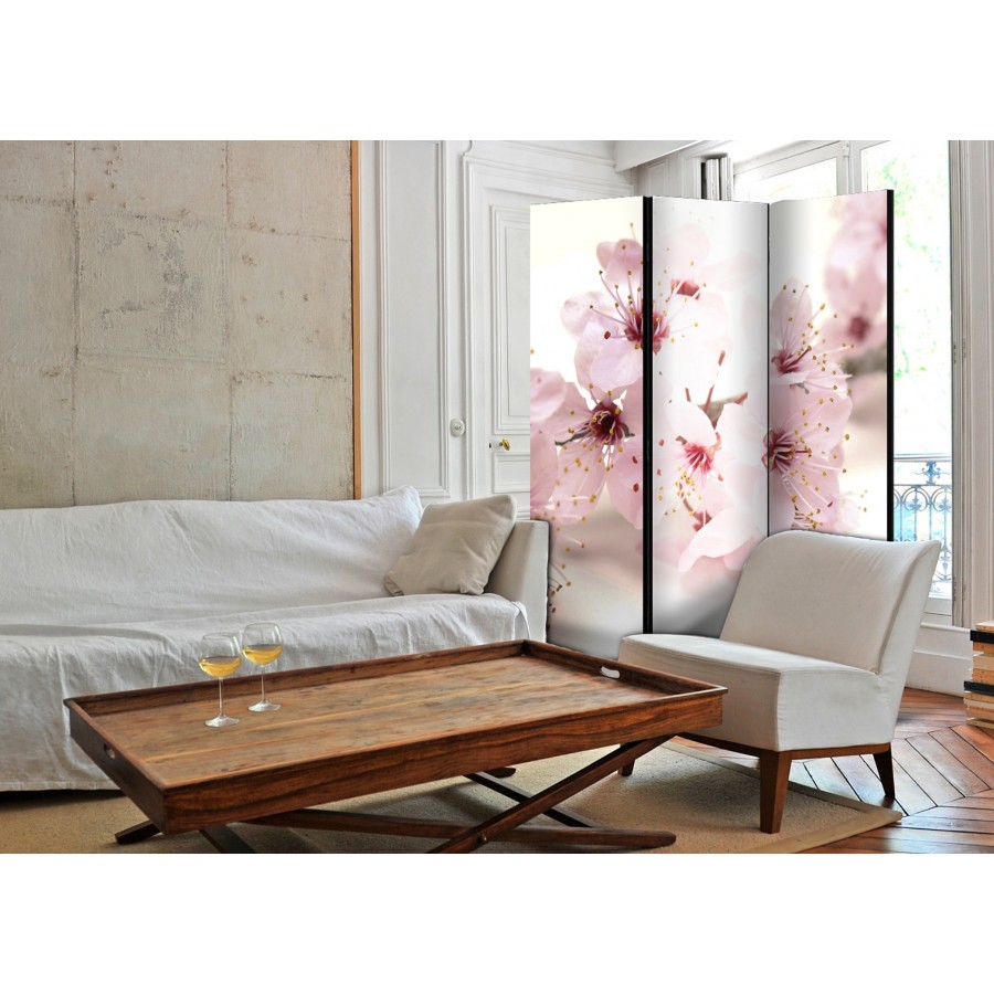 Separè decorativo "Paravento - Cherry Blossom [Room Dividers]" è la decorazione originale per gli interni arredati in stile moderno. Paravento di 3 pannelli fatto del telaio di legno e tela stampata su entrambi i lati non solo può dividere lo spazio ma anche creare un'arrangiamento unico nella stanza. Grazie all'alta qualità del prodotto e della stampa Full HD del disegno originale i separè da interni renderanno ogni stanza affascinante. Paraventi decorativi per interni sono un'idea perfetta per arredare la casa. Vale la pena menzionare le loro funzioni pratiche - separè per interni possono p.es. nascondere lo stendibiancheria. È una decorazione molto originale che si può usare sia negli appartamenti che in locali di servizi come saloni di parrucchiere o di bellezza, studi medici o ristoranti. Separè decorativo è ideale:Come un elemento decorativo o un elemento che divide gli spazi in casaIn un monolocale dividendo la zona giorno dalla zona notteIn camera da letto dove divide la zona notte dalla guardarobaNei boutique e saloni di bellezza - sia come un arrangiamento originale che lo spogliatoio!Per dividere lo spazio nella stanza dei bambiniIn grandi appartamenti e nei loft Dati tecnici Dimensioni delle parti:135x172: 45x172 45x172 45x172
