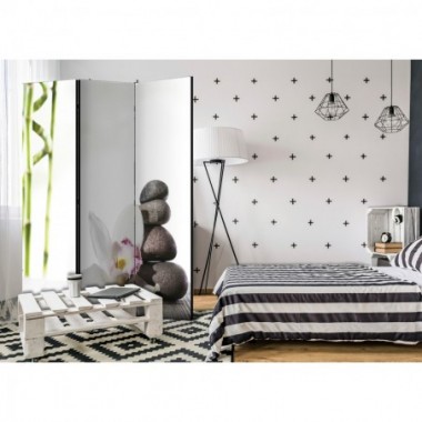 Separè decorativo "Paravento - Harmony [Room Dividers]" è la decorazione originale per gli interni arredati in stile moderno. Paravento di 3 pannelli fatto del telaio di legno e tela stampata su entrambi i lati non solo può dividere lo spazio ma anche creare un'arrangiamento unico nella stanza. Grazie all'alta qualità del prodotto e della stampa Full HD del disegno originale i separè da interni renderanno ogni stanza affascinante. Paraventi decorativi per interni sono un'idea perfetta per arredare la casa. Vale la pena menzionare le loro funzioni pratiche - separè per interni possono p.es. nascondere lo stendibiancheria. È una decorazione molto originale che si può usare sia negli appartamenti che in locali di servizi come saloni di parrucchiere o di bellezza, studi medici o ristoranti. Separè decorativo è ideale:Come un elemento decorativo o un elemento che divide gli spazi in casaIn un monolocale dividendo la zona giorno dalla zona notteIn camera da letto dove divide la zona notte dalla guardarobaNei boutique e saloni di bellezza - sia come un arrangiamento originale che lo spogliatoio!Per dividere lo spazio nella stanza dei bambiniIn grandi appartamenti e nei loft Dati tecnici Dimensioni delle parti:135x172: 45x172 45x172 45x172