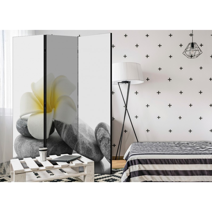 Separè decorativo "Paravento - White Lotus [Room Dividers]" è la decorazione originale per gli interni arredati in stile moderno. Paravento di 3 pannelli fatto del telaio di legno e tela stampata su entrambi i lati non solo può dividere lo spazio ma anche creare un'arrangiamento unico nella stanza. Grazie all'alta qualità del prodotto e della stampa Full HD del disegno originale i separè da interni renderanno ogni stanza affascinante. Paraventi decorativi per interni sono un'idea perfetta per arredare la casa. Vale la pena menzionare le loro funzioni pratiche - separè per interni possono p.es. nascondere lo stendibiancheria. È una decorazione molto originale che si può usare sia negli appartamenti che in locali di servizi come saloni di parrucchiere o di bellezza, studi medici o ristoranti. Separè decorativo è ideale:Come un elemento decorativo o un elemento che divide gli spazi in casaIn un monolocale dividendo la zona giorno dalla zona notteIn camera da letto dove divide la zona notte dalla guardarobaNei boutique e saloni di bellezza - sia come un arrangiamento originale che lo spogliatoio!Per dividere lo spazio nella stanza dei bambiniIn grandi appartamenti e nei loft Dati tecnici Dimensioni delle parti:135x172: 45x172 45x172 45x172