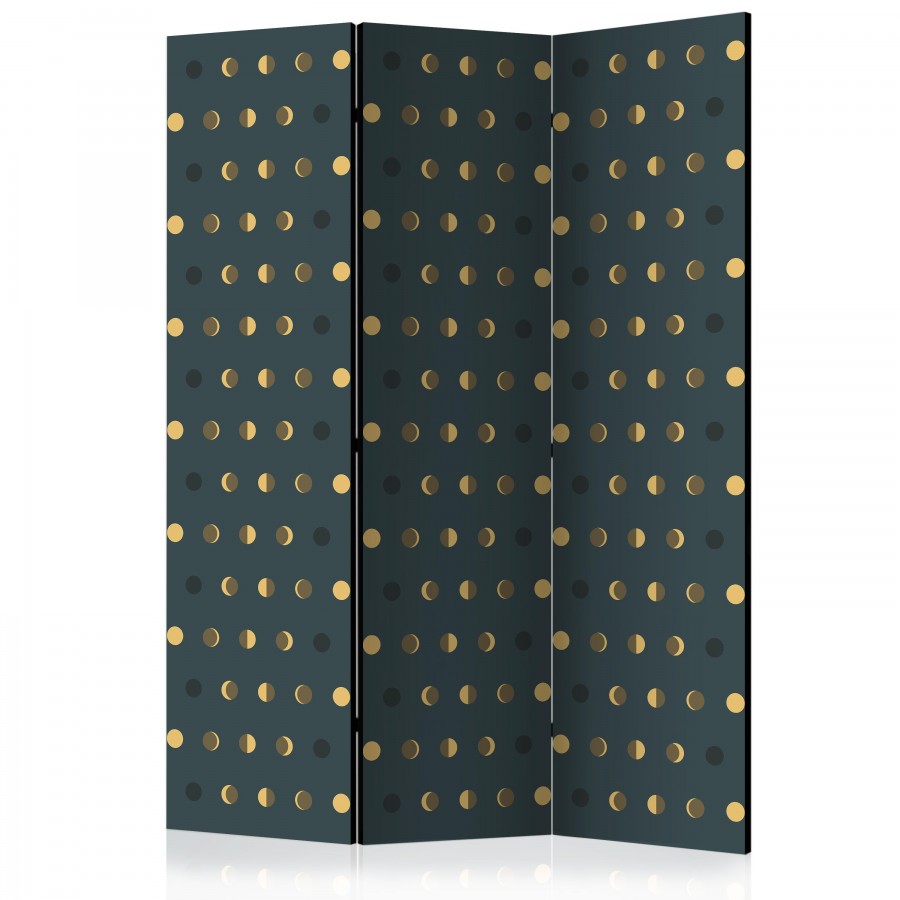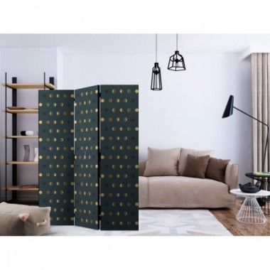 Separè decorativo "Paravento - Dots [Room Dividers]" è la decorazione originale per gli interni arredati in stile moderno. Paravento di 3 pannelli fatto del telaio di legno e tela stampata su entrambi i lati non solo può dividere lo spazio ma anche creare un'arrangiamento unico nella stanza. Grazie all'alta qualità del prodotto e della stampa Full HD del disegno originale i separè da interni renderanno ogni stanza affascinante. Paraventi decorativi per interni sono un'idea perfetta per arredare la casa. Vale la pena menzionare le loro funzioni pratiche - separè per interni possono p.es. nascondere lo stendibiancheria. È una decorazione molto originale che si può usare sia negli appartamenti che in locali di servizi come saloni di parrucchiere o di bellezza, studi medici o ristoranti. Separè decorativo è ideale:Come un elemento decorativo o un elemento che divide gli spazi in casaIn un monolocale dividendo la zona giorno dalla zona notteIn camera da letto dove divide la zona notte dalla guardarobaNei boutique e saloni di bellezza - sia come un arrangiamento originale che lo spogliatoio!Per dividere lo spazio nella stanza dei bambiniIn grandi appartamenti e nei loft Dati tecnici Dimensioni delle parti:135x172: 45x172 45x172 45x172