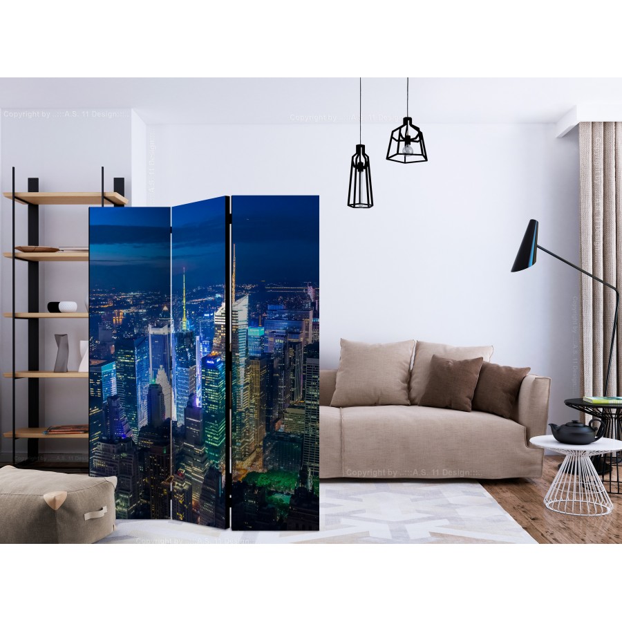 Separè decorativo "Paravento - Manhattan - night [Room Dividers]" è la decorazione originale per gli interni arredati in stile moderno. Paravento di 3 pannelli fatto del telaio di legno e tela stampata su entrambi i lati non solo può dividere lo spazio ma anche creare un'arrangiamento unico nella stanza. Grazie all'alta qualità del prodotto e della stampa Full HD del disegno originale i separè da interni renderanno ogni stanza affascinante. Paraventi decorativi per interni sono un'idea perfetta per arredare la casa. Vale la pena menzionare le loro funzioni pratiche - separè per interni possono p.es. nascondere lo stendibiancheria. È una decorazione molto originale che si può usare sia negli appartamenti che in locali di servizi come saloni di parrucchiere o di bellezza, studi medici o ristoranti. Separè decorativo è ideale:Come un elemento decorativo o un elemento che divide gli spazi in casaIn un monolocale dividendo la zona giorno dalla zona notteIn camera da letto dove divide la zona notte dalla guardarobaNei boutique e saloni di bellezza - sia come un arrangiamento originale che lo spogliatoio!Per dividere lo spazio nella stanza dei bambiniIn grandi appartamenti e nei loft Dati tecnici Dimensioni delle parti:135x172: 45x172 45x172 45x172