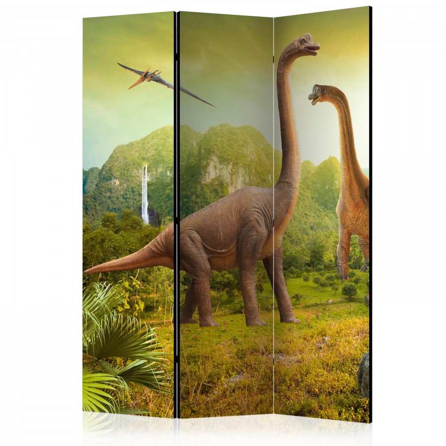 Separè decorativo "Paravento - Dinosaurs [Room Dividers]" è la decorazione originale per gli interni arredati in stile moderno. Paravento di 3 pannelli fatto del telaio di legno e tela stampata su entrambi i lati non solo può dividere lo spazio ma anche creare un'arrangiamento unico nella stanza. Grazie all'alta qualità del prodotto e della stampa Full HD del disegno originale i separè da interni renderanno ogni stanza affascinante. Paraventi decorativi per interni sono un'idea perfetta per arredare la casa. Vale la pena menzionare le loro funzioni pratiche - separè per interni possono p.es. nascondere lo stendibiancheria. È una decorazione molto originale che si può usare sia negli appartamenti che in locali di servizi come saloni di parrucchiere o di bellezza, studi medici o ristoranti. Separè decorativo è ideale:Come un elemento decorativo o un elemento che divide gli spazi in casaIn un monolocale dividendo la zona giorno dalla zona notteIn camera da letto dove divide la zona notte dalla guardarobaNei boutique e saloni di bellezza - sia come un arrangiamento originale che lo spogliatoio!Per dividere lo spazio nella stanza dei bambiniIn grandi appartamenti e nei loft Dati tecnici Dimensioni delle parti:135x172: 45x172 45x172 45x172