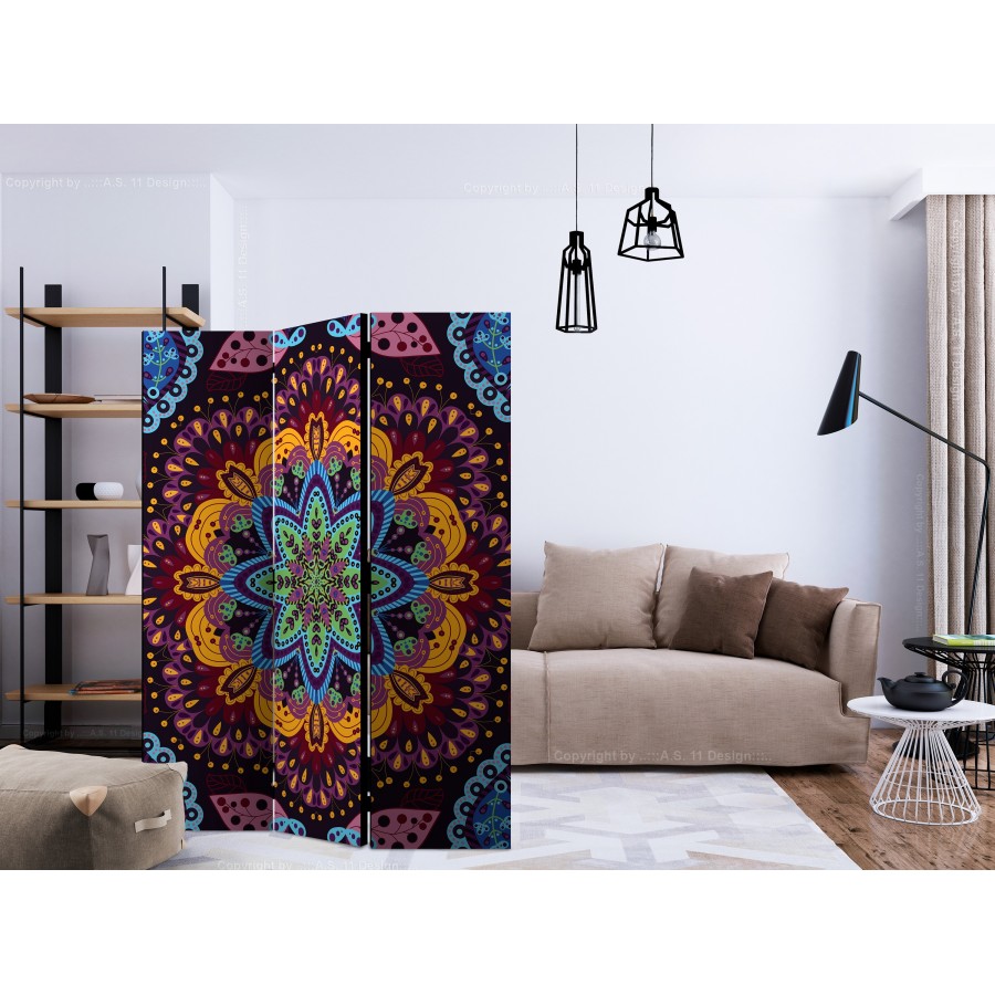 Separè decorativo "Paravento - Colourful Kaleidoscope [Room Dividers]" è la decorazione originale per gli interni arredati in stile moderno. Paravento di 3 pannelli fatto del telaio di legno e tela stampata su entrambi i lati non solo può dividere lo spazio ma anche creare un'arrangiamento unico nella stanza. Grazie all'alta qualità del prodotto e della stampa Full HD del disegno originale i separè da interni renderanno ogni stanza affascinante. Paraventi decorativi per interni sono un'idea perfetta per arredare la casa. Vale la pena menzionare le loro funzioni pratiche - separè per interni possono p.es. nascondere lo stendibiancheria. È una decorazione molto originale che si può usare sia negli appartamenti che in locali di servizi come saloni di parrucchiere o di bellezza, studi medici o ristoranti. Separè decorativo è ideale:Come un elemento decorativo o un elemento che divide gli spazi in casaIn un monolocale dividendo la zona giorno dalla zona notteIn camera da letto dove divide la zona notte dalla guardarobaNei boutique e saloni di bellezza - sia come un arrangiamento originale che lo spogliatoio!Per dividere lo spazio nella stanza dei bambiniIn grandi appartamenti e nei loft Dati tecnici Dimensioni delle parti:135x172: 45x172 45x172 45x172