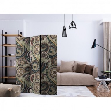 Separè decorativo "Paravento - Posh ornament [Room Dividers]" è la decorazione originale per gli interni arredati in stile moderno. Paravento di 3 pannelli fatto del telaio di legno e tela stampata su entrambi i lati non solo può dividere lo spazio ma anche creare un'arrangiamento unico nella stanza. Grazie all'alta qualità del prodotto e della stampa Full HD del disegno originale i separè da interni renderanno ogni stanza affascinante. Paraventi decorativi per interni sono un'idea perfetta per arredare la casa. Vale la pena menzionare le loro funzioni pratiche - separè per interni possono p.es. nascondere lo stendibiancheria. È una decorazione molto originale che si può usare sia negli appartamenti che in locali di servizi come saloni di parrucchiere o di bellezza, studi medici o ristoranti. Separè decorativo è ideale:Come un elemento decorativo o un elemento che divide gli spazi in casaIn un monolocale dividendo la zona giorno dalla zona notteIn camera da letto dove divide la zona notte dalla guardarobaNei boutique e saloni di bellezza - sia come un arrangiamento originale che lo spogliatoio!Per dividere lo spazio nella stanza dei bambiniIn grandi appartamenti e nei loft Dati tecnici Dimensioni delle parti:135x172: 45x172 45x172 45x172