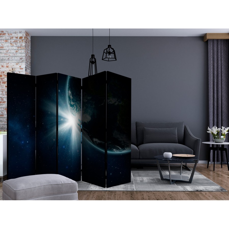 Separè decorativo "Paravento - Earth II [Room Dividers]" è la decorazione originale per gli interni arredati in stile moderno. Paravento di 5 pannelli fatto del telaio di legno e tela stampata su entrambi i lati non solo può dividere lo spazio ma anche creare un'arrangiamento unico nella stanza. Grazie all'alta qualità del prodotto e della stampa Full HD del disegno originale i separè da interni renderanno ogni stanza affascinante. Paraventi decorativi per interni sono un'idea perfetta per arredare la casa. Vale la pena menzionare le loro funzioni pratiche - separè per interni possono p.es. nascondere lo stendibiancheria. È una decorazione molto originale che si può usare sia negli appartamenti che in locali di servizi come saloni di parrucchiere o di bellezza, studi medici o ristoranti. Separè decorativo è ideale: Come un elemento decorativo o un elemento che divide gli spazi in casa In un monolocale dividendo la zona giorno dalla zona notte In camera da letto dove divide la zona notte dalla guardaroba Nei boutique e saloni di bellezza - sia come un arrangiamento originale che lo spogliatoio! Per dividere lo spazio nella stanza dei bambini In grandi appartamenti e nei loft Dati tecnici Dimensioni delle parti:225x172: 45x172 45x172 45x172 45x172 45x172