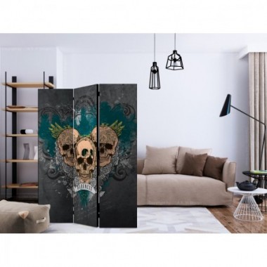 Separè decorativo "Paravento - Darkness II [Room Dividers]" è la decorazione originale per gli interni arredati in stile moderno. Paravento di 3 pannelli fatto del telaio di legno e tela stampata su entrambi i lati non solo può dividere lo spazio ma anche creare un'arrangiamento unico nella stanza. Grazie all'alta qualità del prodotto e della stampa Full HD del disegno originale i separè da interni renderanno ogni stanza affascinante. Paraventi decorativi per interni sono un'idea perfetta per arredare la casa. Vale la pena menzionare le loro funzioni pratiche - separè per interni possono p.es. nascondere lo stendibiancheria. È una decorazione molto originale che si può usare sia negli appartamenti che in locali di servizi come saloni di parrucchiere o di bellezza, studi medici o ristoranti. Separè decorativo è ideale:Come un elemento decorativo o un elemento che divide gli spazi in casaIn un monolocale dividendo la zona giorno dalla zona notteIn camera da letto dove divide la zona notte dalla guardarobaNei boutique e saloni di bellezza - sia come un arrangiamento originale che lo spogliatoio!Per dividere lo spazio nella stanza dei bambiniIn grandi appartamenti e nei loft Dati tecnici Dimensioni delle parti:135x172: 45x172 45x172 45x172