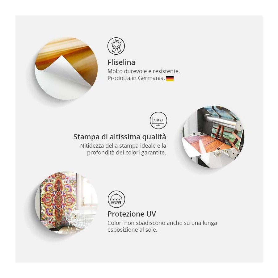 Separè decorativo "Paravento - Lost [Room Dividers]" è la decorazione originale per gli interni arredati in stile moderno. Paravento di 3 pannelli fatto del telaio di legno e tela stampata su entrambi i lati non solo può dividere lo spazio ma anche creare un'arrangiamento unico nella stanza. Grazie all'alta qualità del prodotto e della stampa Full HD del disegno originale i separè da interni renderanno ogni stanza affascinante. Paraventi decorativi per interni sono un'idea perfetta per arredare la casa. Vale la pena menzionare le loro funzioni pratiche - separè per interni possono p.es. nascondere lo stendibiancheria. È una decorazione molto originale che si può usare sia negli appartamenti che in locali di servizi come saloni di parrucchiere o di bellezza, studi medici o ristoranti. Separè decorativo è ideale:Come un elemento decorativo o un elemento che divide gli spazi in casaIn un monolocale dividendo la zona giorno dalla zona notteIn camera da letto dove divide la zona notte dalla guardarobaNei boutique e saloni di bellezza - sia come un arrangiamento originale che lo spogliatoio!Per dividere lo spazio nella stanza dei bambiniIn grandi appartamenti e nei loft Dati tecnici Dimensioni delle parti:135x172: 45x172 45x172 45x172