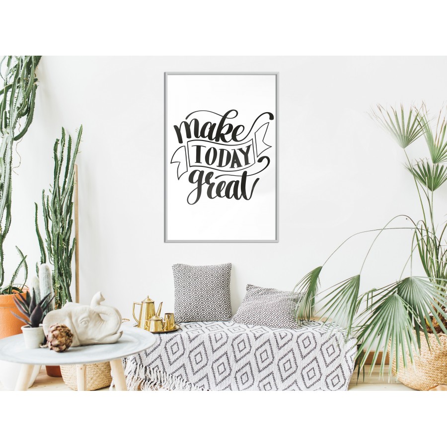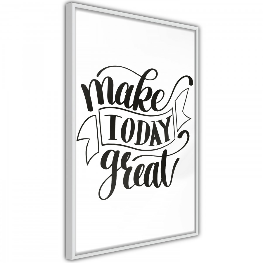 I nostri poster sono un’ottima proposta per le persone che vogliono cambiare l’aspetto degli interni a costo relativamente basso. Basta solo un poster o un set di essi per dare alla stanza un nuovo carattere.Il poster "Poster - Make Today Great [Poster]" è il frutto del lavoro del nostro team di designer che si assicura che le nostre proposte siano sempre attuali. È disponibile in diversi formati e tipi di cornice, in modo da farti scegliere facilmente l’opzione adatta alle tue esigenze. Materiali di alta qualità Il poster "Poster - Make Today Great [Poster]" è stampato con tecnologia HD su una carta di elevata qualità di peso pari a 170 g/m², che riproduce perfettamente i colori. La stampa utilizzata è resistente alle radiazioni UV, grazie a ciò i colori non si sbiadiscono, anche con una lunga esposizione alla luce solare. Sia il poster che la cornice sono realizzati con materiali sicuri e inodori, perciò possono essere appesi in qualunque ambiente, incluse la stanza da letto e la stanza di tuo figlio. Varianti di cornici disponibili:Poster incorniciatoPoster incorniciato e con passe-partout Poster incorniciato – minimalismo raffinato Il poster è incorniciato da una cornice minimalista e leggera che lo mette in evidenza sulla parete. Il poster è protetto dal vetro acrilico, sul retro della cornice è montato un attacco di ancoraggio. Poster incorniciato e con passe-partout – un pizzico di eleganza L’inserto passe-partout in colore écru farà risaltare i colori del poster e creerà un ulteriore contrasto tra la grafica, la cornice e la parete. In più, dà una leggera impressione tridimensionale alla cornice e svolge anche il ruolo di un’ulteriore strato protettivo del poster. Il poster è protetto dal vetro acrilico, sul retro della cornice è montato un attacco di ancoraggio.Colori delle cornici disponibili:NeroBiancoOroDimensioni della cornice: larghezza 9 mm, spessore 18 mm. Fissaggio facile Il poster incorniciato può essere fissato con l’uso dell’attacco in dotazione o, qualora non vogliamo o non possiamo forare le pareti, è talmente leggero che può essere fissato sul nastro di montaggio o posizionato sul pavimento o sui mobili e appoggiato con nonchalance al muro! Effetto design garantito! Infinite possibilità di comporre i propri set Con pochi poster creerai facilmente la tua galleria personale! Combina audacemente colori, motivi, stili e formati diversi! Il comune denominatore del set di poster può essere il motivo, il tema o la coloristica. Puoi anche creare un set completamente a tua discrezione, ricorda, decidi tu! Poster di design per tutti Il nostro assortimento comprende, tra l’altro, poster retrò, poster con motivi floreali e animali, poster motivazionali, mappe, poster di film e per fan di videogiochi, calendari, poster per bambini e tanto altro ancora.Le nostre proposte includono grafiche che si adattano a quasi tutte le stanze: poster per il salotto, la stanza di un bambino o di un adolescente, poster per la camera da letto, ecc. Poster per cucina o bagno? Perché no! Ricorda solo di non metterli a diretto contatto con l’acqua.I poster sono anche una proposta interessante per la decorazione dei locali di servizio e degli uffici – piaceranno sia ai dipendenti che ai clienti. Indipendentemente dal fatto che si tratti di un intero set o di un singolo poster, le nostre proposte possono essere uno straordinario complemento dell’arredamento di uffici, locali di servizio e locali di ristorazione, sale di attesa, club, hotel, ecc. Il poster sulla parete è un elemento di arredamento di ogni luogo moderno di incontro al passo con i tempi. Il poster è un modo semplice per introdurre le ultime tendenze negli interni.