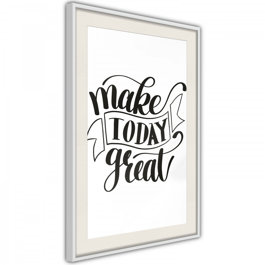 I nostri poster sono un’ottima proposta per le persone che vogliono cambiare l’aspetto degli interni a costo relativamente basso. Basta solo un poster o un set di essi per dare alla stanza un nuovo carattere.Il poster "Poster - Make Today Great [Poster]" è il frutto del lavoro del nostro team di designer che si assicura che le nostre proposte siano sempre attuali. È disponibile in diversi formati e tipi di cornice, in modo da farti scegliere facilmente l’opzione adatta alle tue esigenze. Materiali di alta qualità Il poster "Poster - Make Today Great [Poster]" è stampato con tecnologia HD su una carta di elevata qualità di peso pari a 170 g/m², che riproduce perfettamente i colori. La stampa utilizzata è resistente alle radiazioni UV, grazie a ciò i colori non si sbiadiscono, anche con una lunga esposizione alla luce solare. Sia il poster che la cornice sono realizzati con materiali sicuri e inodori, perciò possono essere appesi in qualunque ambiente, incluse la stanza da letto e la stanza di tuo figlio. Varianti di cornici disponibili:Poster incorniciatoPoster incorniciato e con passe-partout Poster incorniciato – minimalismo raffinato Il poster è incorniciato da una cornice minimalista e leggera che lo mette in evidenza sulla parete. Il poster è protetto dal vetro acrilico, sul retro della cornice è montato un attacco di ancoraggio. Poster incorniciato e con passe-partout – un pizzico di eleganza L’inserto passe-partout in colore écru farà risaltare i colori del poster e creerà un ulteriore contrasto tra la grafica, la cornice e la parete. In più, dà una leggera impressione tridimensionale alla cornice e svolge anche il ruolo di un’ulteriore strato protettivo del poster. Il poster è protetto dal vetro acrilico, sul retro della cornice è montato un attacco di ancoraggio.Colori delle cornici disponibili:NeroBiancoOroDimensioni della cornice: larghezza 9 mm, spessore 18 mm. Fissaggio facile Il poster incorniciato può essere fissato con l’uso dell’attacco in dotazione o, qualora non vogliamo o non possiamo forare le pareti, è talmente leggero che può essere fissato sul nastro di montaggio o posizionato sul pavimento o sui mobili e appoggiato con nonchalance al muro! Effetto design garantito! Infinite possibilità di comporre i propri set Con pochi poster creerai facilmente la tua galleria personale! Combina audacemente colori, motivi, stili e formati diversi! Il comune denominatore del set di poster può essere il motivo, il tema o la coloristica. Puoi anche creare un set completamente a tua discrezione, ricorda, decidi tu! Poster di design per tutti Il nostro assortimento comprende, tra l’altro, poster retrò, poster con motivi floreali e animali, poster motivazionali, mappe, poster di film e per fan di videogiochi, calendari, poster per bambini e tanto altro ancora.Le nostre proposte includono grafiche che si adattano a quasi tutte le stanze: poster per il salotto, la stanza di un bambino o di un adolescente, poster per la camera da letto, ecc. Poster per cucina o bagno? Perché no! Ricorda solo di non metterli a diretto contatto con l’acqua.I poster sono anche una proposta interessante per la decorazione dei locali di servizio e degli uffici – piaceranno sia ai dipendenti che ai clienti. Indipendentemente dal fatto che si tratti di un intero set o di un singolo poster, le nostre proposte possono essere uno straordinario complemento dell’arredamento di uffici, locali di servizio e locali di ristorazione, sale di attesa, club, hotel, ecc. Il poster sulla parete è un elemento di arredamento di ogni luogo moderno di incontro al passo con i tempi. Il poster è un modo semplice per introdurre le ultime tendenze negli interni.