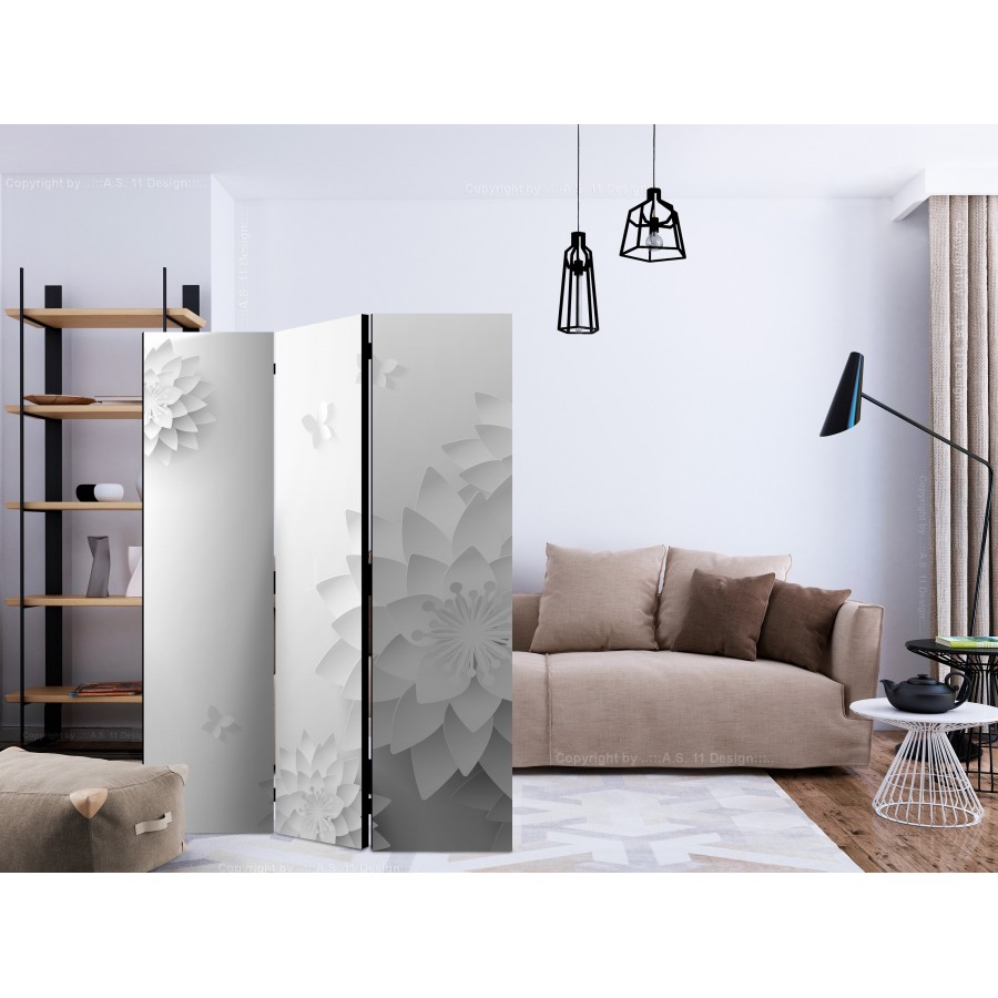 Separè decorativo "Paravento - Oriental Flowers [Room Dividers]" è la decorazione originale per gli interni arredati in stile moderno. Paravento di 3 pannelli fatto del telaio di legno e tela stampata su entrambi i lati non solo può dividere lo spazio ma anche creare un'arrangiamento unico nella stanza. Grazie all'alta qualità del prodotto e della stampa Full HD del disegno originale i separè da interni renderanno ogni stanza affascinante. Paraventi decorativi per interni sono un'idea perfetta per arredare la casa. Vale la pena menzionare le loro funzioni pratiche - separè per interni possono p.es. nascondere lo stendibiancheria. È una decorazione molto originale che si può usare sia negli appartamenti che in locali di servizi come saloni di parrucchiere o di bellezza, studi medici o ristoranti. Separè decorativo è ideale:Come un elemento decorativo o un elemento che divide gli spazi in casaIn un monolocale dividendo la zona giorno dalla zona notteIn camera da letto dove divide la zona notte dalla guardarobaNei boutique e saloni di bellezza - sia come un arrangiamento originale che lo spogliatoio!Per dividere lo spazio nella stanza dei bambiniIn grandi appartamenti e nei loft Dati tecnici Dimensioni delle parti:135x172: 45x172 45x172 45x172