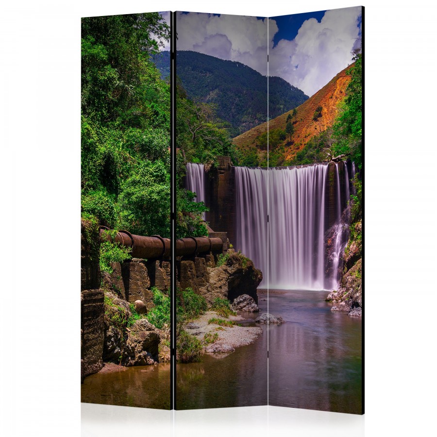 Separè decorativo "Paravento - Reggae Falls [Room Dividers]" è la decorazione originale per gli interni arredati in stile moderno. Paravento di 3 pannelli fatto del telaio di legno e tela stampata su entrambi i lati non solo può dividere lo spazio ma anche creare un'arrangiamento unico nella stanza. Grazie all'alta qualità del prodotto e della stampa Full HD del disegno originale i separè da interni renderanno ogni stanza affascinante. Paraventi decorativi per interni sono un'idea perfetta per arredare la casa. Vale la pena menzionare le loro funzioni pratiche - separè per interni possono p.es. nascondere lo stendibiancheria. È una decorazione molto originale che si può usare sia negli appartamenti che in locali di servizi come saloni di parrucchiere o di bellezza, studi medici o ristoranti. Separè decorativo è ideale:Come un elemento decorativo o un elemento che divide gli spazi in casaIn un monolocale dividendo la zona giorno dalla zona notteIn camera da letto dove divide la zona notte dalla guardarobaNei boutique e saloni di bellezza - sia come un arrangiamento originale che lo spogliatoio!Per dividere lo spazio nella stanza dei bambiniIn grandi appartamenti e nei loft Dati tecnici Dimensioni delle parti:135x172: 45x172 45x172 45x172