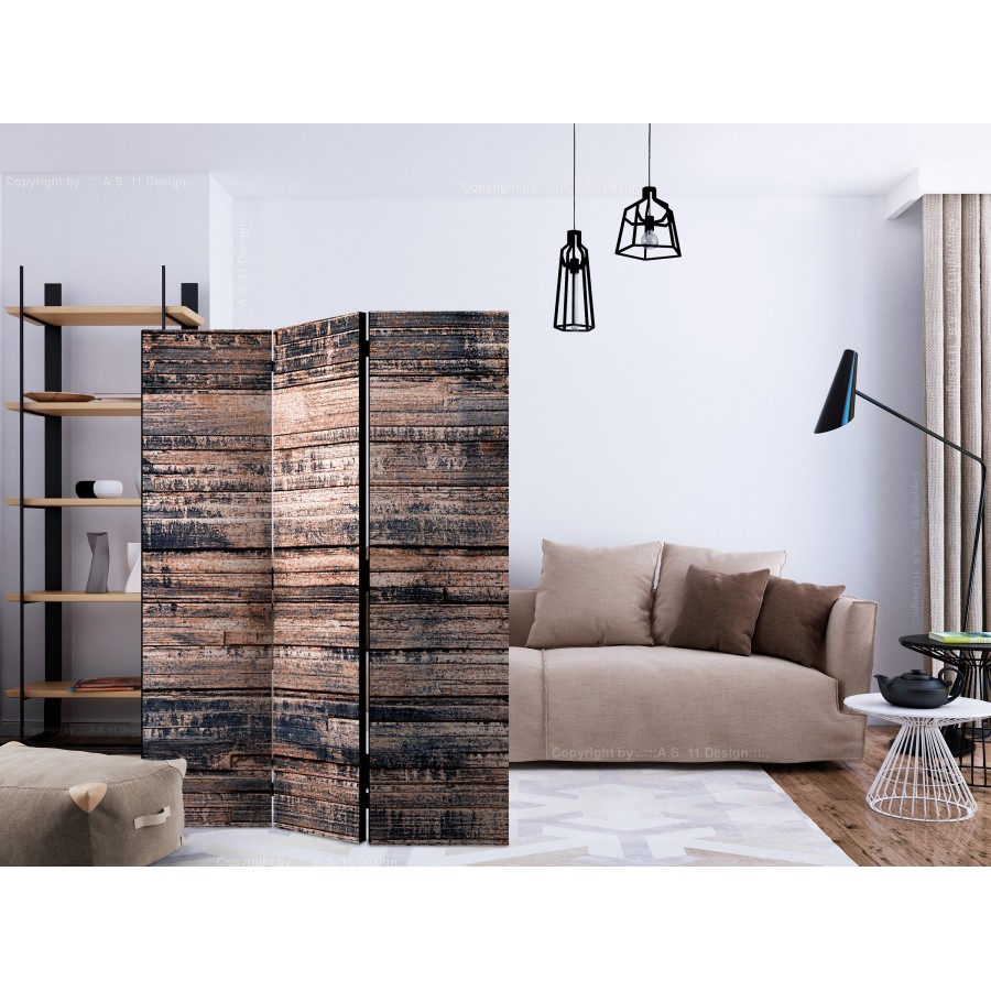 Separè decorativo "Paravento - Burnt Boards [Room Dividers]" è la decorazione originale per gli interni arredati in stile moderno. Paravento di 3 pannelli fatto del telaio di legno e tela stampata su entrambi i lati non solo può dividere lo spazio ma anche creare un'arrangiamento unico nella stanza. Grazie all'alta qualità del prodotto e della stampa Full HD del disegno originale i separè da interni renderanno ogni stanza affascinante. Paraventi decorativi per interni sono un'idea perfetta per arredare la casa. Vale la pena menzionare le loro funzioni pratiche - separè per interni possono p.es. nascondere lo stendibiancheria. È una decorazione molto originale che si può usare sia negli appartamenti che in locali di servizi come saloni di parrucchiere o di bellezza, studi medici o ristoranti. Separè decorativo è ideale:Come un elemento decorativo o un elemento che divide gli spazi in casaIn un monolocale dividendo la zona giorno dalla zona notteIn camera da letto dove divide la zona notte dalla guardarobaNei boutique e saloni di bellezza - sia come un arrangiamento originale che lo spogliatoio!Per dividere lo spazio nella stanza dei bambiniIn grandi appartamenti e nei loft Dati tecnici Dimensioni delle parti:135x172: 45x172 45x172 45x172