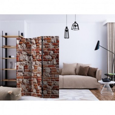 Separè decorativo "Paravento - Bricky Age [Room Dividers]" è la decorazione originale per gli interni arredati in stile moderno. Paravento di 3 pannelli fatto del telaio di legno e tela stampata su entrambi i lati non solo può dividere lo spazio ma anche creare un'arrangiamento unico nella stanza. Grazie all'alta qualità del prodotto e della stampa Full HD del disegno originale i separè da interni renderanno ogni stanza affascinante. Paraventi decorativi per interni sono un'idea perfetta per arredare la casa. Vale la pena menzionare le loro funzioni pratiche - separè per interni possono p.es. nascondere lo stendibiancheria. È una decorazione molto originale che si può usare sia negli appartamenti che in locali di servizi come saloni di parrucchiere o di bellezza, studi medici o ristoranti. Separè decorativo è ideale:Come un elemento decorativo o un elemento che divide gli spazi in casaIn un monolocale dividendo la zona giorno dalla zona notteIn camera da letto dove divide la zona notte dalla guardarobaNei boutique e saloni di bellezza - sia come un arrangiamento originale che lo spogliatoio!Per dividere lo spazio nella stanza dei bambiniIn grandi appartamenti e nei loft Dati tecnici Dimensioni delle parti:135x172: 45x172 45x172 45x172