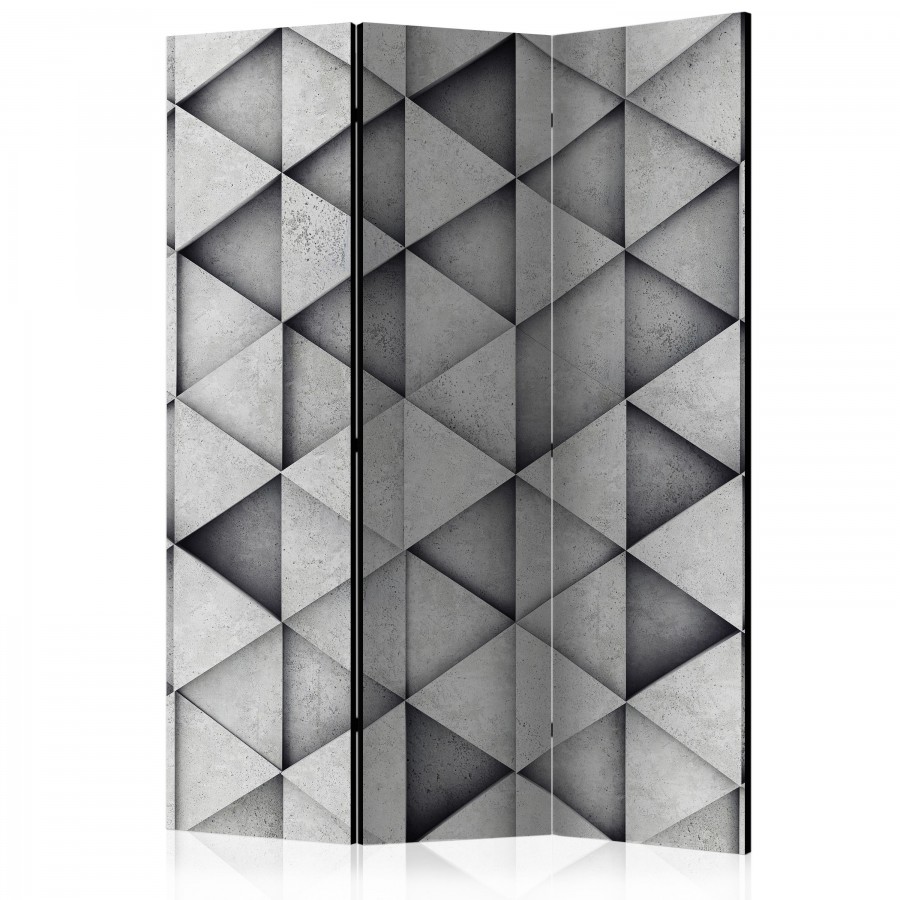 Separè decorativo "Paravento - Grey Triangles [Room Dividers]" è la decorazione originale per gli interni arredati in stile moderno. Paravento di 3 pannelli fatto del telaio di legno e tela stampata su entrambi i lati non solo può dividere lo spazio ma anche creare un'arrangiamento unico nella stanza. Grazie all'alta qualità del prodotto e della stampa Full HD del disegno originale i separè da interni renderanno ogni stanza affascinante. Paraventi decorativi per interni sono un'idea perfetta per arredare la casa. Vale la pena menzionare le loro funzioni pratiche - separè per interni possono p.es. nascondere lo stendibiancheria. È una decorazione molto originale che si può usare sia negli appartamenti che in locali di servizi come saloni di parrucchiere o di bellezza, studi medici o ristoranti. Separè decorativo è ideale:Come un elemento decorativo o un elemento che divide gli spazi in casaIn un monolocale dividendo la zona giorno dalla zona notteIn camera da letto dove divide la zona notte dalla guardarobaNei boutique e saloni di bellezza - sia come un arrangiamento originale che lo spogliatoio!Per dividere lo spazio nella stanza dei bambiniIn grandi appartamenti e nei loft Dati tecnici Dimensioni delle parti:135x172: 45x172 45x172 45x172