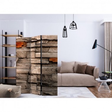 Separè decorativo "Paravento - Stony Song [Room Dividers]" è la decorazione originale per gli interni arredati in stile moderno. Paravento di 3 pannelli fatto del telaio di legno e tela stampata su entrambi i lati non solo può dividere lo spazio ma anche creare un'arrangiamento unico nella stanza. Grazie all'alta qualità del prodotto e della stampa Full HD del disegno originale i separè da interni renderanno ogni stanza affascinante. Paraventi decorativi per interni sono un'idea perfetta per arredare la casa. Vale la pena menzionare le loro funzioni pratiche - separè per interni possono p.es. nascondere lo stendibiancheria. È una decorazione molto originale che si può usare sia negli appartamenti che in locali di servizi come saloni di parrucchiere o di bellezza, studi medici o ristoranti. Separè decorativo è ideale:Come un elemento decorativo o un elemento che divide gli spazi in casaIn un monolocale dividendo la zona giorno dalla zona notteIn camera da letto dove divide la zona notte dalla guardarobaNei boutique e saloni di bellezza - sia come un arrangiamento originale che lo spogliatoio!Per dividere lo spazio nella stanza dei bambiniIn grandi appartamenti e nei loft Dati tecnici Dimensioni delle parti:135x172: 45x172 45x172 45x172