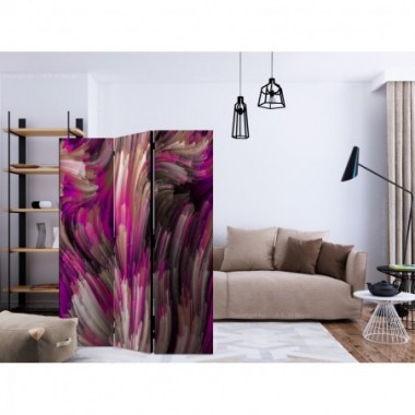Separè decorativo "Paravento - Purple Energy [Room Dividers]" è la decorazione originale per gli interni arredati in stile moderno. Paravento di 3 pannelli fatto del telaio di legno e tela stampata su entrambi i lati non solo può dividere lo spazio ma anche creare un'arrangiamento unico nella stanza. Grazie all'alta qualità del prodotto e della stampa Full HD del disegno originale i separè da interni renderanno ogni stanza affascinante. Paraventi decorativi per interni sono un'idea perfetta per arredare la casa. Vale la pena menzionare le loro funzioni pratiche - separè per interni possono p.es. nascondere lo stendibiancheria. È una decorazione molto originale che si può usare sia negli appartamenti che in locali di servizi come saloni di parrucchiere o di bellezza, studi medici o ristoranti. Separè decorativo è ideale:Come un elemento decorativo o un elemento che divide gli spazi in casaIn un monolocale dividendo la zona giorno dalla zona notteIn camera da letto dove divide la zona notte dalla guardarobaNei boutique e saloni di bellezza - sia come un arrangiamento originale che lo spogliatoio!Per dividere lo spazio nella stanza dei bambiniIn grandi appartamenti e nei loft Dati tecnici Dimensioni delle parti:135x172: 45x172 45x172 45x172