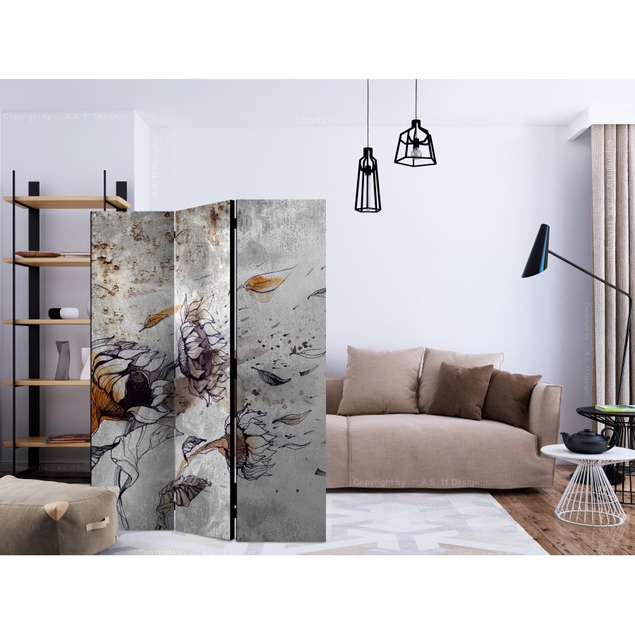 Separè decorativo "Paravento - Recall sunflowers [Room Dividers]" è la decorazione originale per gli interni arredati in stile moderno. Paravento di 3 pannelli fatto del telaio di legno e tela stampata su entrambi i lati non solo può dividere lo spazio ma anche creare un'arrangiamento unico nella stanza. Grazie all'alta qualità del prodotto e della stampa Full HD del disegno originale i separè da interni renderanno ogni stanza affascinante. Paraventi decorativi per interni sono un'idea perfetta per arredare la casa. Vale la pena menzionare le loro funzioni pratiche - separè per interni possono p.es. nascondere lo stendibiancheria. È una decorazione molto originale che si può usare sia negli appartamenti che in locali di servizi come saloni di parrucchiere o di bellezza, studi medici o ristoranti. Separè decorativo è ideale:Come un elemento decorativo o un elemento che divide gli spazi in casaIn un monolocale dividendo la zona giorno dalla zona notteIn camera da letto dove divide la zona notte dalla guardarobaNei boutique e saloni di bellezza - sia come un arrangiamento originale che lo spogliatoio!Per dividere lo spazio nella stanza dei bambiniIn grandi appartamenti e nei loft Dati tecnici Dimensioni delle parti:135x172: 45x172 45x172 45x172