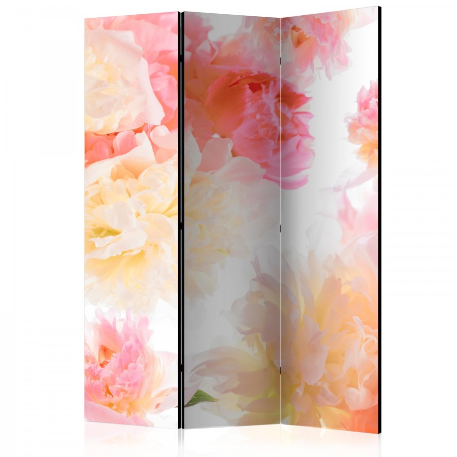Separè decorativo "Paravento - Pastel peonies [Room Dividers]" è la decorazione originale per gli interni arredati in stile moderno. Paravento di 3 pannelli fatto del telaio di legno e tela stampata su entrambi i lati non solo può dividere lo spazio ma anche creare un'arrangiamento unico nella stanza. Grazie all'alta qualità del prodotto e della stampa Full HD del disegno originale i separè da interni renderanno ogni stanza affascinante. Paraventi decorativi per interni sono un'idea perfetta per arredare la casa. Vale la pena menzionare le loro funzioni pratiche - separè per interni possono p.es. nascondere lo stendibiancheria. È una decorazione molto originale che si può usare sia negli appartamenti che in locali di servizi come saloni di parrucchiere o di bellezza, studi medici o ristoranti. Separè decorativo è ideale:Come un elemento decorativo o un elemento che divide gli spazi in casaIn un monolocale dividendo la zona giorno dalla zona notteIn camera da letto dove divide la zona notte dalla guardarobaNei boutique e saloni di bellezza - sia come un arrangiamento originale che lo spogliatoio!Per dividere lo spazio nella stanza dei bambiniIn grandi appartamenti e nei loft Dati tecnici Dimensioni delle parti:135x172: 45x172 45x172 45x172
