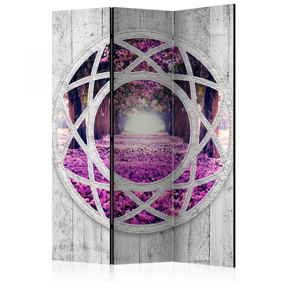 Separè decorativo "Paravento - Fuchsia landscape [Room Dividers]" è la decorazione originale per gli interni arredati in stile moderno. Paravento di 3 pannelli fatto del telaio di legno e tela stampata su entrambi i lati non solo può dividere lo spazio ma anche creare un'arrangiamento unico nella stanza. Grazie all'alta qualità del prodotto e della stampa Full HD del disegno originale i separè da interni renderanno ogni stanza affascinante. Paraventi decorativi per interni sono un'idea perfetta per arredare la casa. Vale la pena menzionare le loro funzioni pratiche - separè per interni possono p.es. nascondere lo stendibiancheria. È una decorazione molto originale che si può usare sia negli appartamenti che in locali di servizi come saloni di parrucchiere o di bellezza, studi medici o ristoranti. Separè decorativo è ideale:Come un elemento decorativo o un elemento che divide gli spazi in casaIn un monolocale dividendo la zona giorno dalla zona notteIn camera da letto dove divide la zona notte dalla guardarobaNei boutique e saloni di bellezza - sia come un arrangiamento originale che lo spogliatoio!Per dividere lo spazio nella stanza dei bambiniIn grandi appartamenti e nei loft Dati tecnici Dimensioni delle parti:135x172: 45x172 45x172 45x172