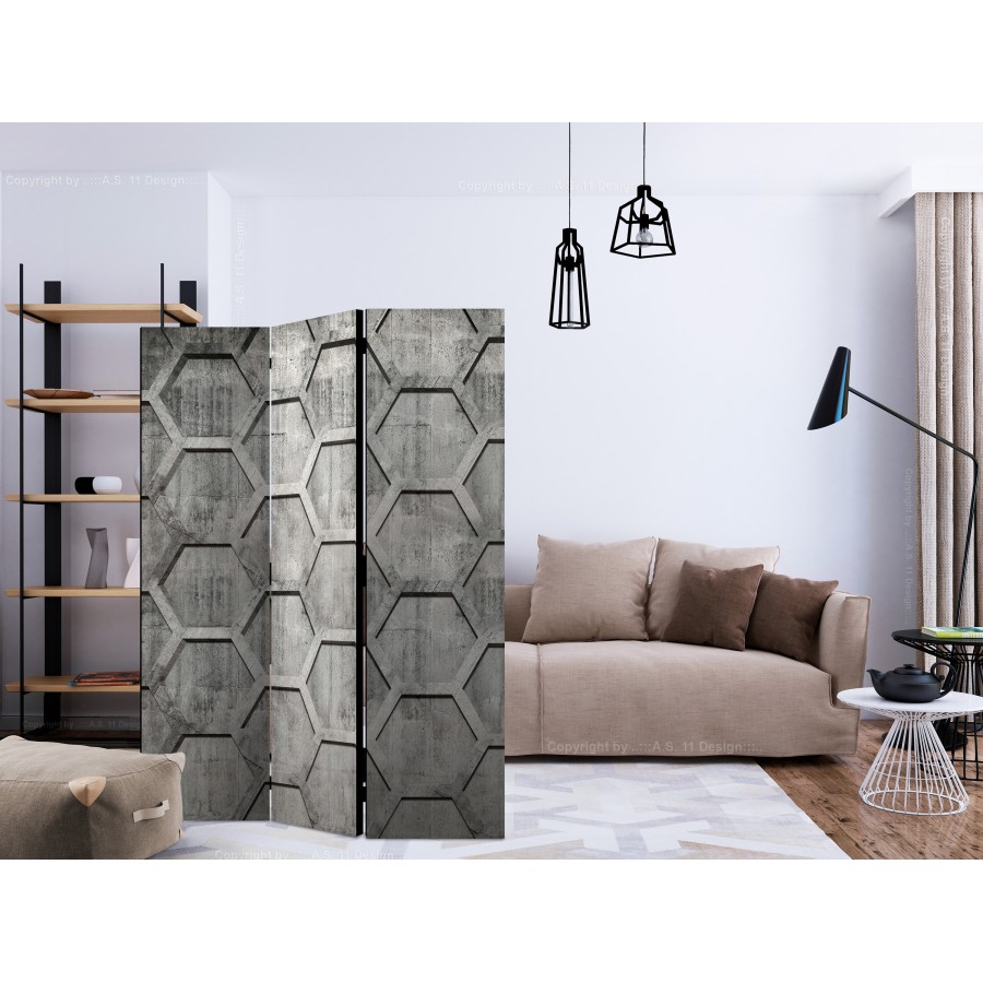 Separè decorativo "Paravento - Platinum cubes [Room Dividers]" è la decorazione originale per gli interni arredati in stile moderno. Paravento di 3 pannelli fatto del telaio di legno e tela stampata su entrambi i lati non solo può dividere lo spazio ma anche creare un'arrangiamento unico nella stanza. Grazie all'alta qualità del prodotto e della stampa Full HD del disegno originale i separè da interni renderanno ogni stanza affascinante. Paraventi decorativi per interni sono un'idea perfetta per arredare la casa. Vale la pena menzionare le loro funzioni pratiche - separè per interni possono p.es. nascondere lo stendibiancheria. È una decorazione molto originale che si può usare sia negli appartamenti che in locali di servizi come saloni di parrucchiere o di bellezza, studi medici o ristoranti. Separè decorativo è ideale:Come un elemento decorativo o un elemento che divide gli spazi in casaIn un monolocale dividendo la zona giorno dalla zona notteIn camera da letto dove divide la zona notte dalla guardarobaNei boutique e saloni di bellezza - sia come un arrangiamento originale che lo spogliatoio!Per dividere lo spazio nella stanza dei bambiniIn grandi appartamenti e nei loft Dati tecnici Dimensioni delle parti:135x172: 45x172 45x172 45x172