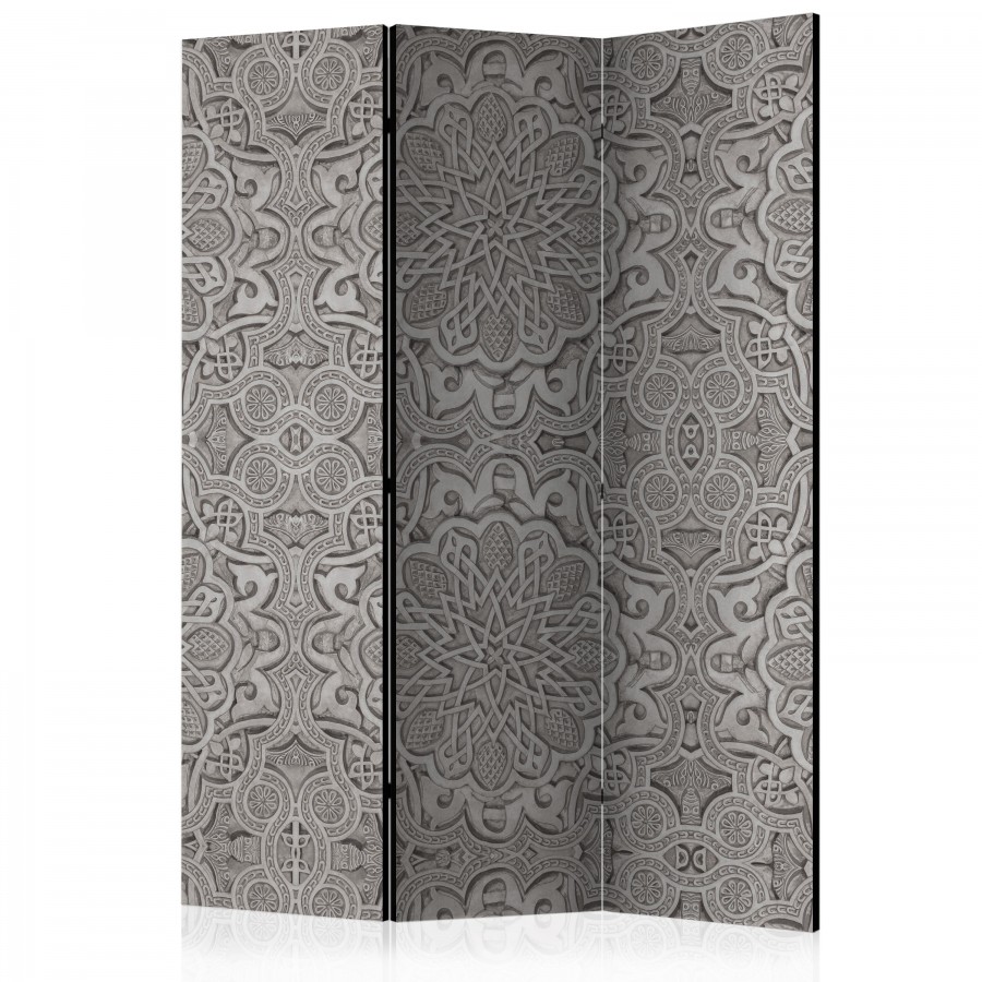 Separè decorativo "Paravento - Oriental ornament [Room Dividers]" è la decorazione originale per gli interni arredati in stile moderno. Paravento di 3 pannelli fatto del telaio di legno e tela stampata su entrambi i lati non solo può dividere lo spazio ma anche creare un'arrangiamento unico nella stanza. Grazie all'alta qualità del prodotto e della stampa Full HD del disegno originale i separè da interni renderanno ogni stanza affascinante. Paraventi decorativi per interni sono un'idea perfetta per arredare la casa. Vale la pena menzionare le loro funzioni pratiche - separè per interni possono p.es. nascondere lo stendibiancheria. È una decorazione molto originale che si può usare sia negli appartamenti che in locali di servizi come saloni di parrucchiere o di bellezza, studi medici o ristoranti. Separè decorativo è ideale:Come un elemento decorativo o un elemento che divide gli spazi in casaIn un monolocale dividendo la zona giorno dalla zona notteIn camera da letto dove divide la zona notte dalla guardarobaNei boutique e saloni di bellezza - sia come un arrangiamento originale che lo spogliatoio!Per dividere lo spazio nella stanza dei bambiniIn grandi appartamenti e nei loft Dati tecnici Dimensioni delle parti:135x172: 45x172 45x172 45x172