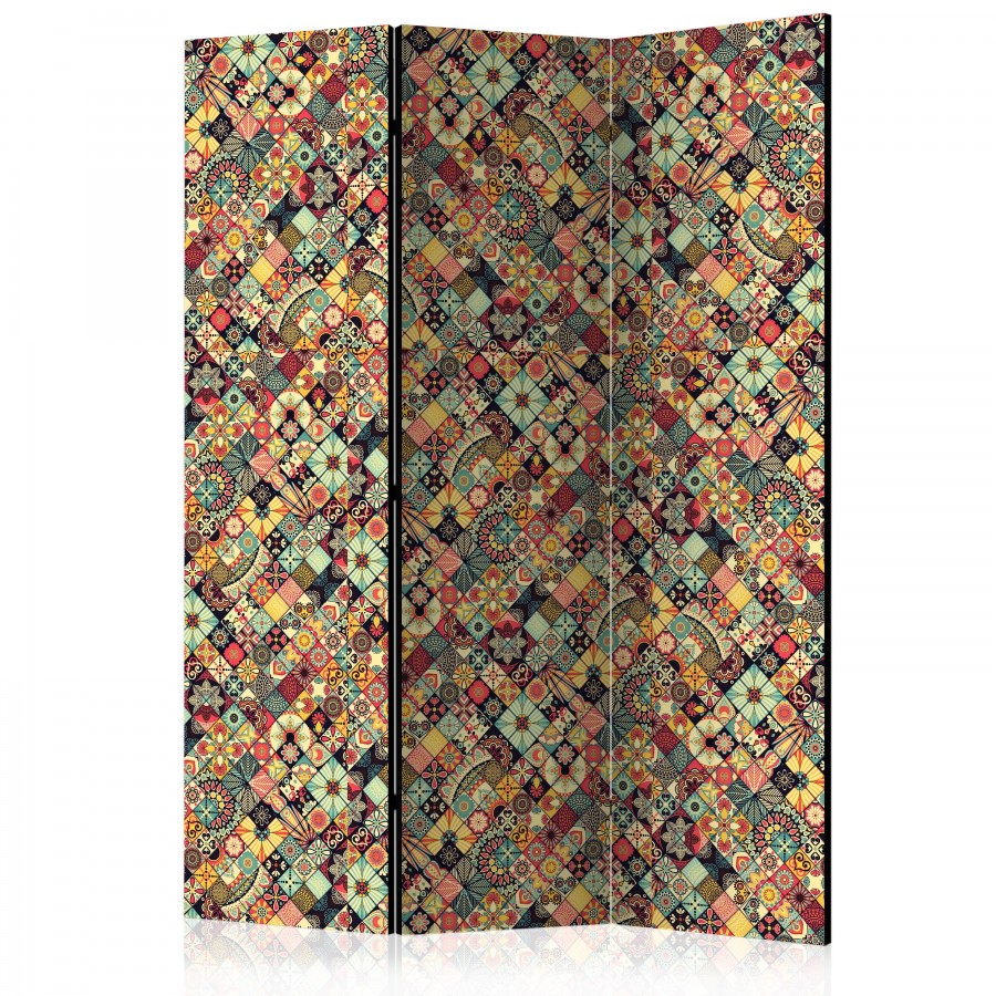 Separè decorativo "Paravento - Rainbow Mosaic [Room Dividers]" è la decorazione originale per gli interni arredati in stile moderno. Paravento di 3 pannelli fatto del telaio di legno e tela stampata su entrambi i lati non solo può dividere lo spazio ma anche creare un'arrangiamento unico nella stanza. Grazie all'alta qualità del prodotto e della stampa Full HD del disegno originale i separè da interni renderanno ogni stanza affascinante. Paraventi decorativi per interni sono un'idea perfetta per arredare la casa. Vale la pena menzionare le loro funzioni pratiche - separè per interni possono p.es. nascondere lo stendibiancheria. È una decorazione molto originale che si può usare sia negli appartamenti che in locali di servizi come saloni di parrucchiere o di bellezza, studi medici o ristoranti. Separè decorativo è ideale:Come un elemento decorativo o un elemento che divide gli spazi in casaIn un monolocale dividendo la zona giorno dalla zona notteIn camera da letto dove divide la zona notte dalla guardarobaNei boutique e saloni di bellezza - sia come un arrangiamento originale che lo spogliatoio!Per dividere lo spazio nella stanza dei bambiniIn grandi appartamenti e nei loft Dati tecnici Dimensioni delle parti:135x172: 45x172 45x172 45x172