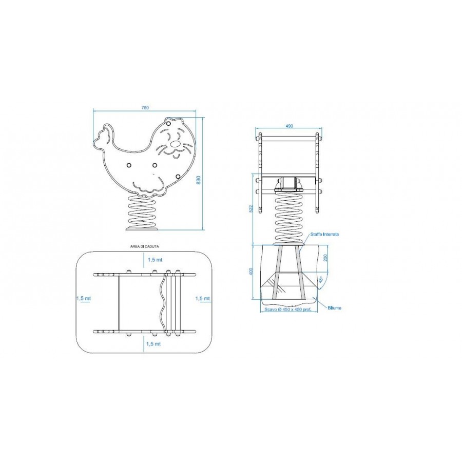 CERTIFICAZIONE: iI gioco a molla è stato progettato e realizzato secondo quanto previsto dalla normativa EN1176-1,6:2008 e certificate con marchio TUV