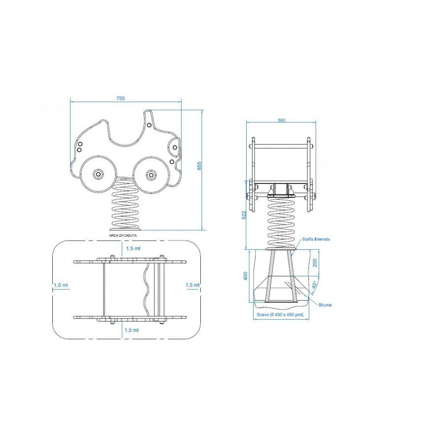 CERTIFICAZIONE: iI gioco a molla è stato progettato e realizzato secondo quanto previsto dalla normativa EN1176-1,6:2008 e certificato con marchio TUV
