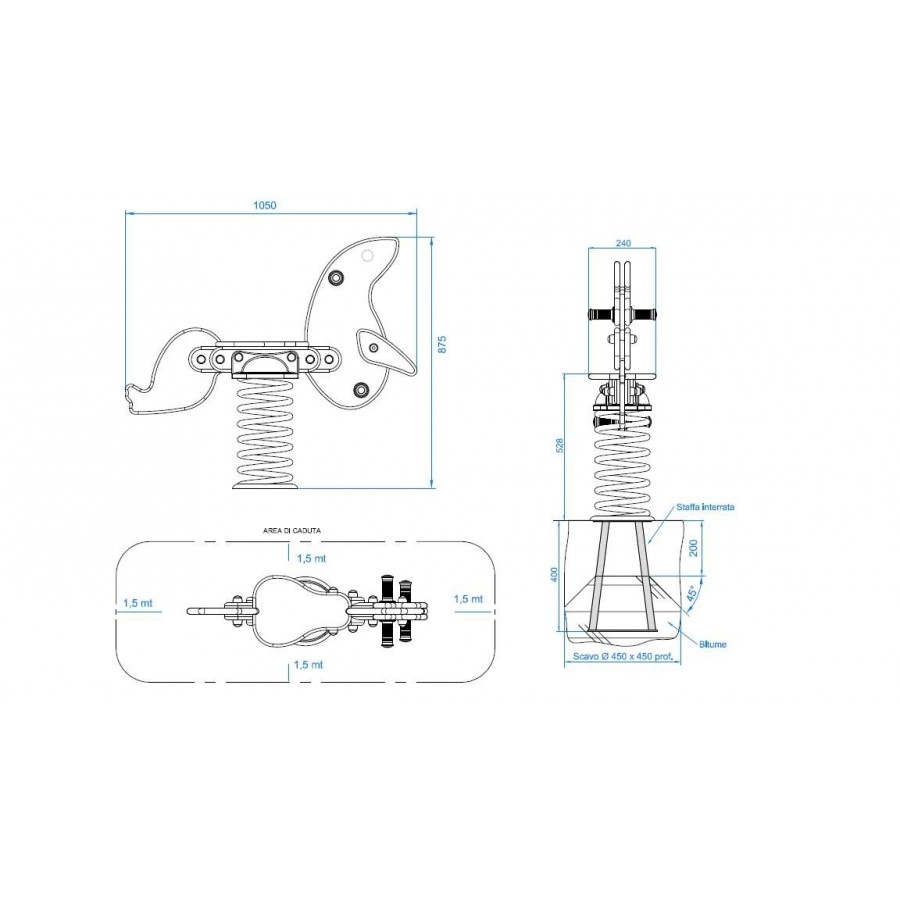 CERTIFICAZIONE: iI gioco a molla è stato progettato e realizzato secondo quanto previsto dalla normativa EN1176-1,6:2008 e certificato con marchio TUV