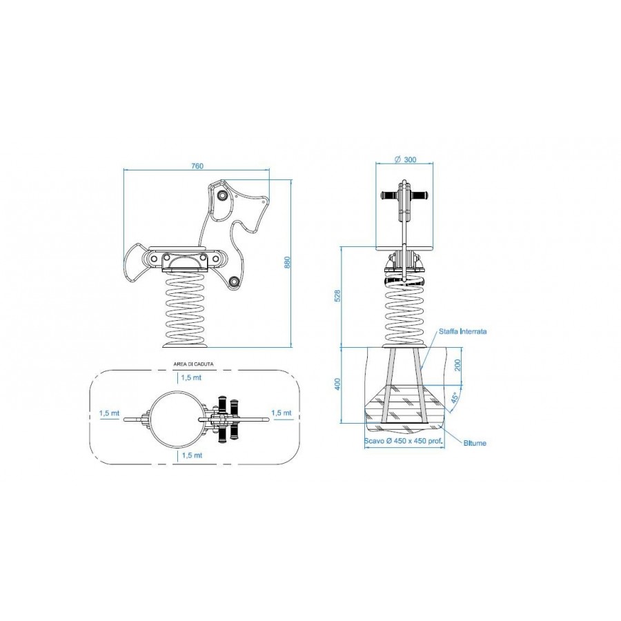 CERTIFICAZIONE: iI gioco a molla è stato progettato e realizzato secondo quanto previsto dalla normativa EN1176-1,6:2008 e certificate con marchio TUV