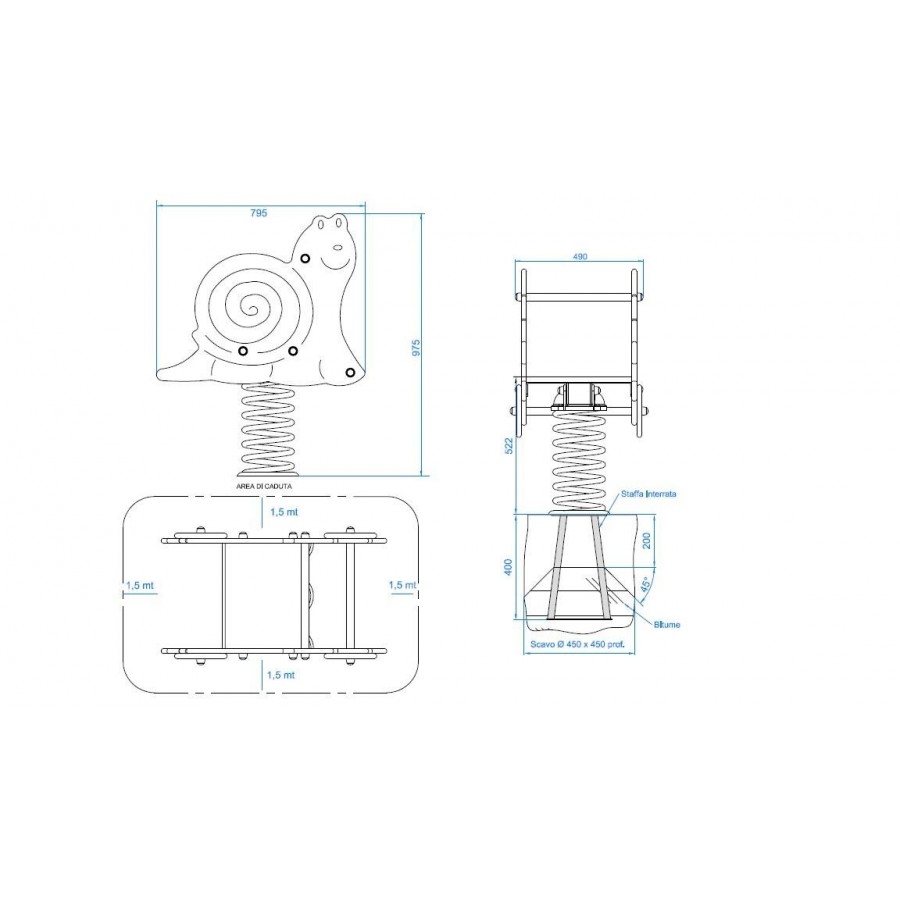 CERTIFICAZIONE: iI gioco a molla è stato progettato e realizzato secondo quanto previsto dalla normativa EN1176-1,6:2008 e certificato con marchio TUV