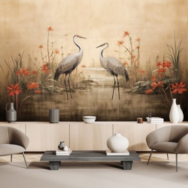 Wallpaper, Cranes by the lake - 100x70