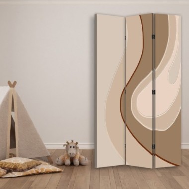 Tela tesa su una cornice solida in MDF/legno. I divisori sono dotati di cerniere in metallo e pratici piedini che proteggono il pavimento dai graffi.