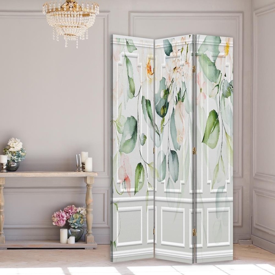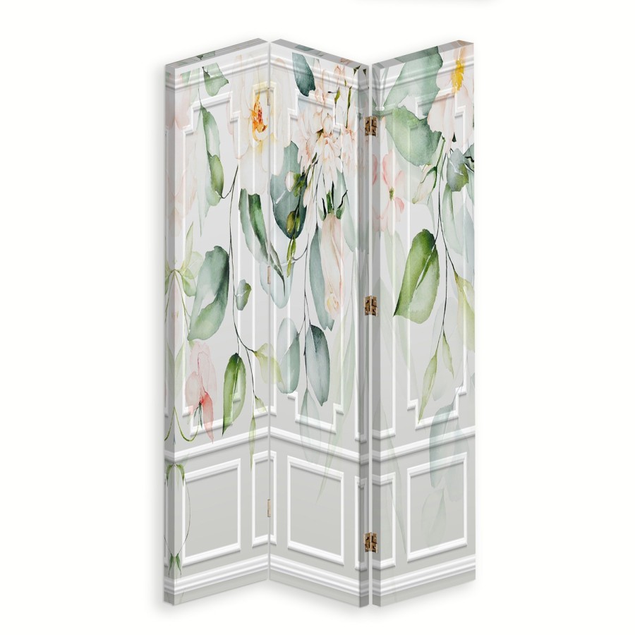 Tela tesa su una cornice solida in MDF/legno. I divisori sono dotati di cerniere in metallo e pratici piedini che proteggono il pavimento dai graffi.