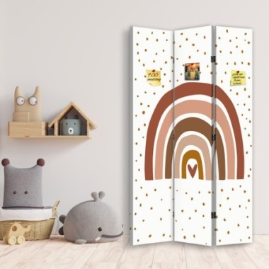 Tela tesa su una cornice solida in MDF/legno. I divisori sono dotati di cerniere in metallo e pratici piedini che proteggono il pavimento dai graffi.
