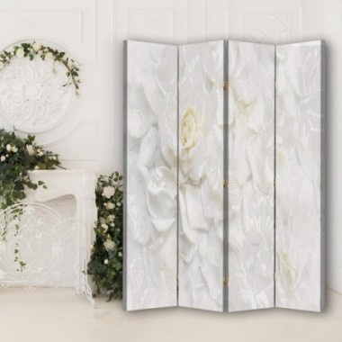 Tela tesa su una cornice solida in MDF/legno. I divisori sono dotati di cerniere in metallo e pratici piedini che proteggono il pavimento dai graffi.