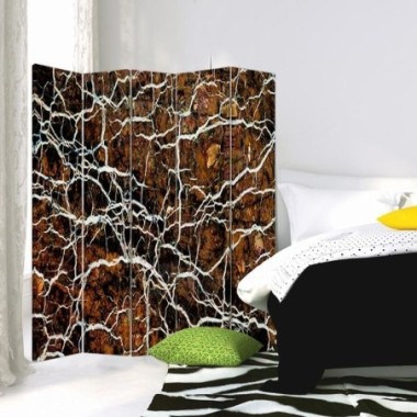 Tela tesa su una cornice solida in MDF/legno. I divisori sono dotati di cerniere in metallo e pratici piedini che proteggono il pavimento dai graffi.